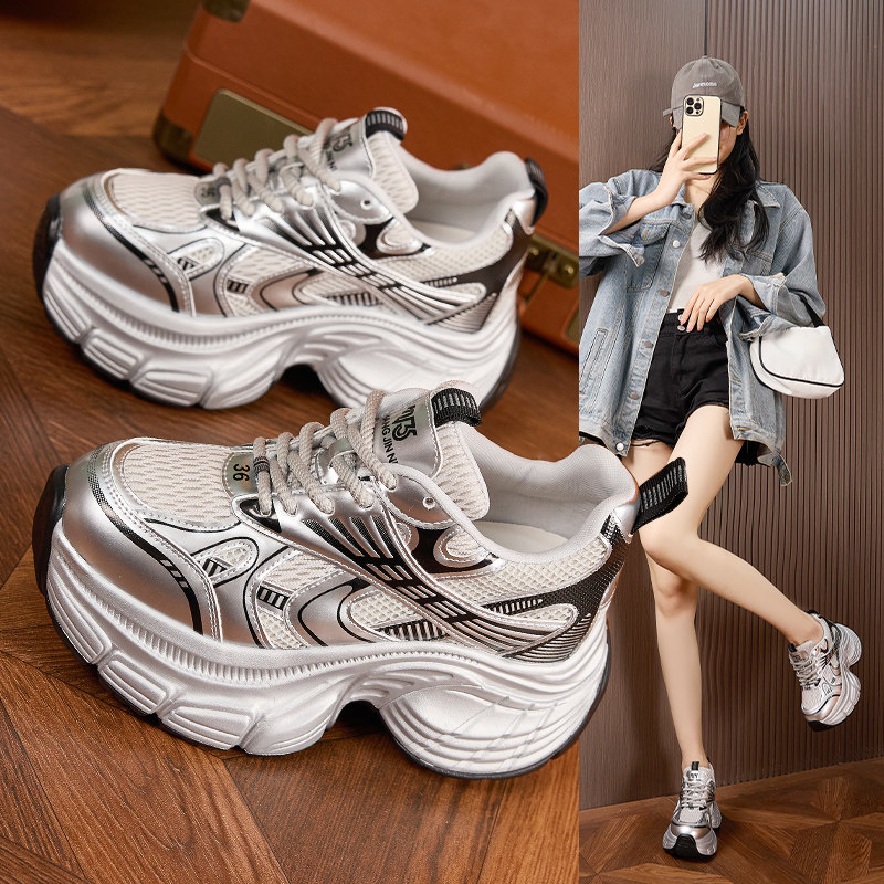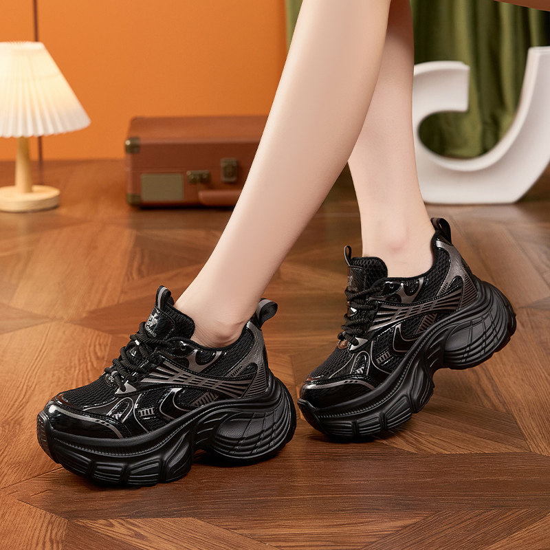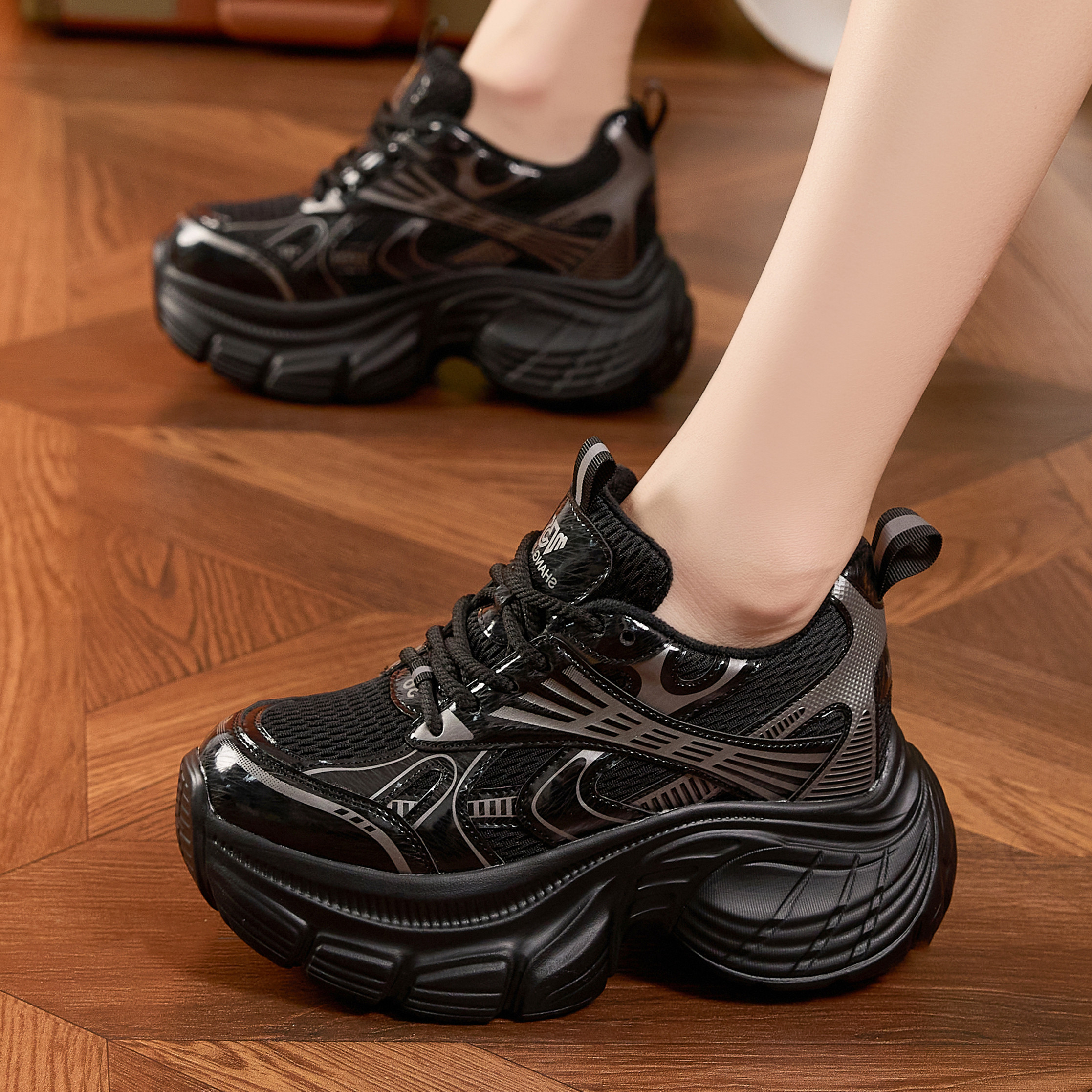 ZFCQ新款厚底加绒内增高老爹鞋女款真皮2025冬黑色显脚小保暖女鞋