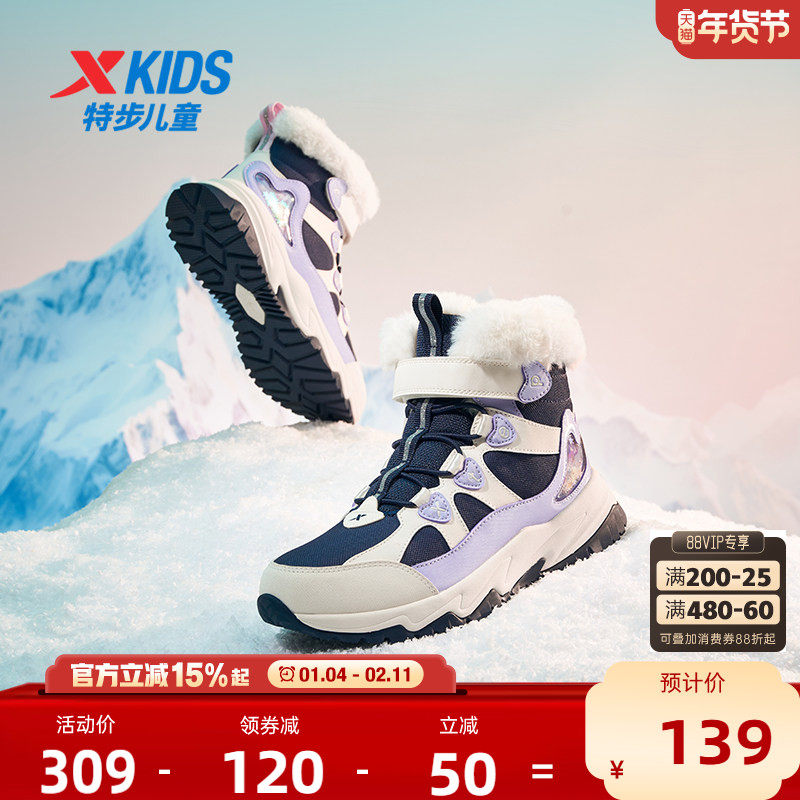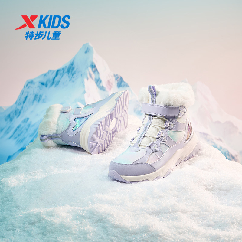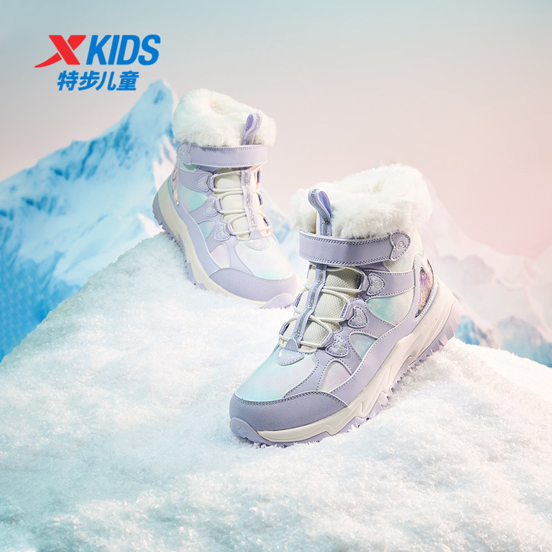 特步女童鞋2026新款加绒儿童加绒棉鞋子户外东北雪地靴高帮运动鞋