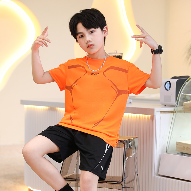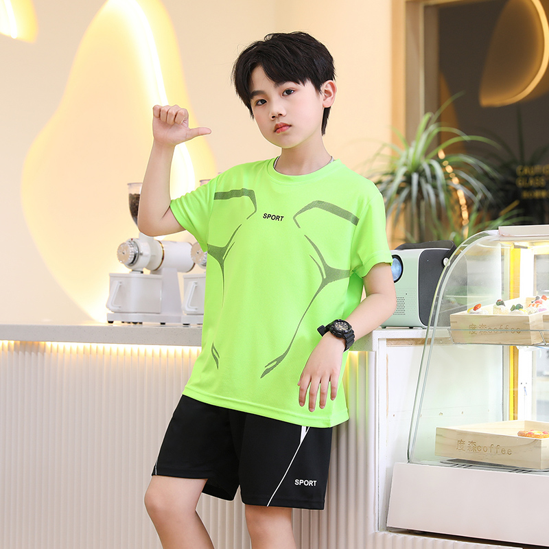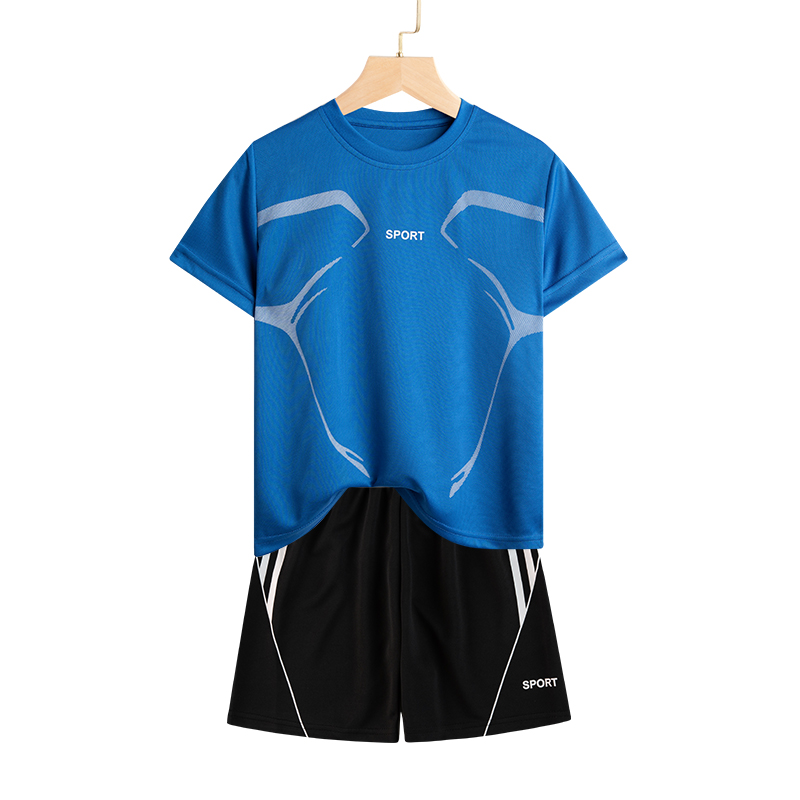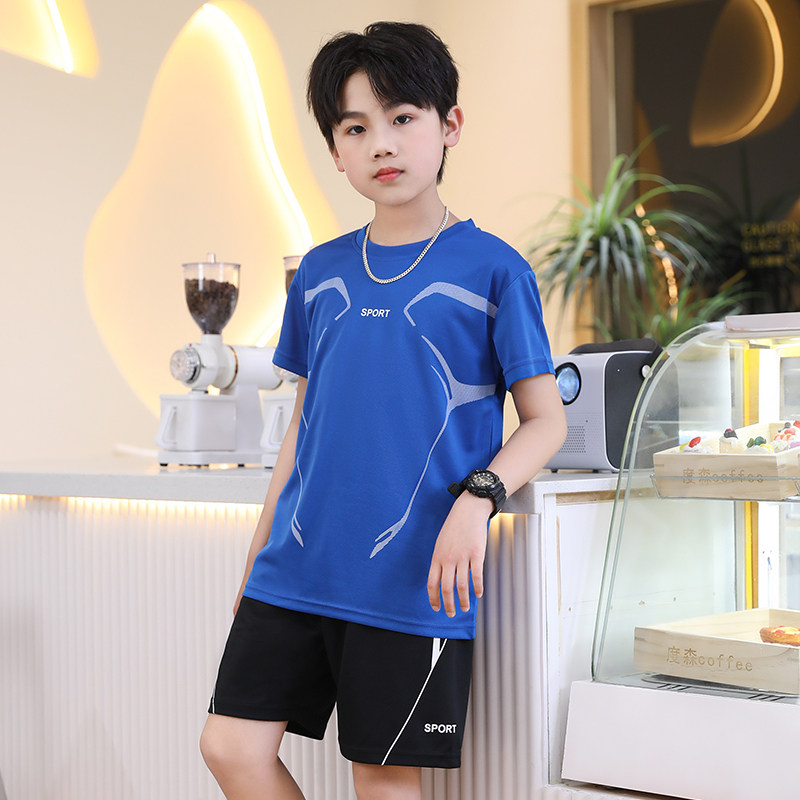 儿童速干运动套装夏季男童薄款短袖短裤两件套训练服蓝球服足球服