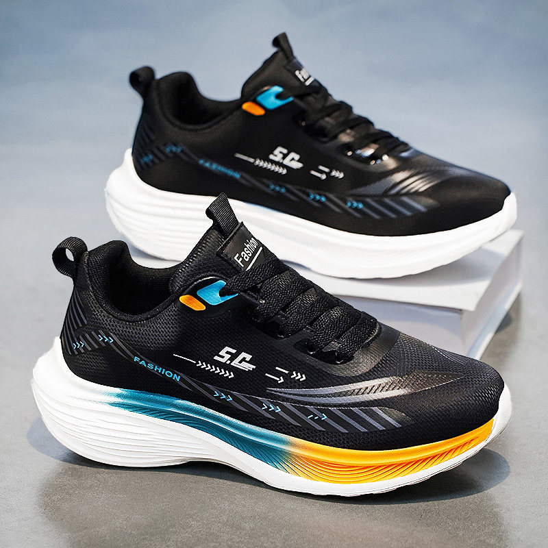 男鞋冬季运动初中学生休闲体测跑步减震轻便软底超轻黑色老爹跑鞋