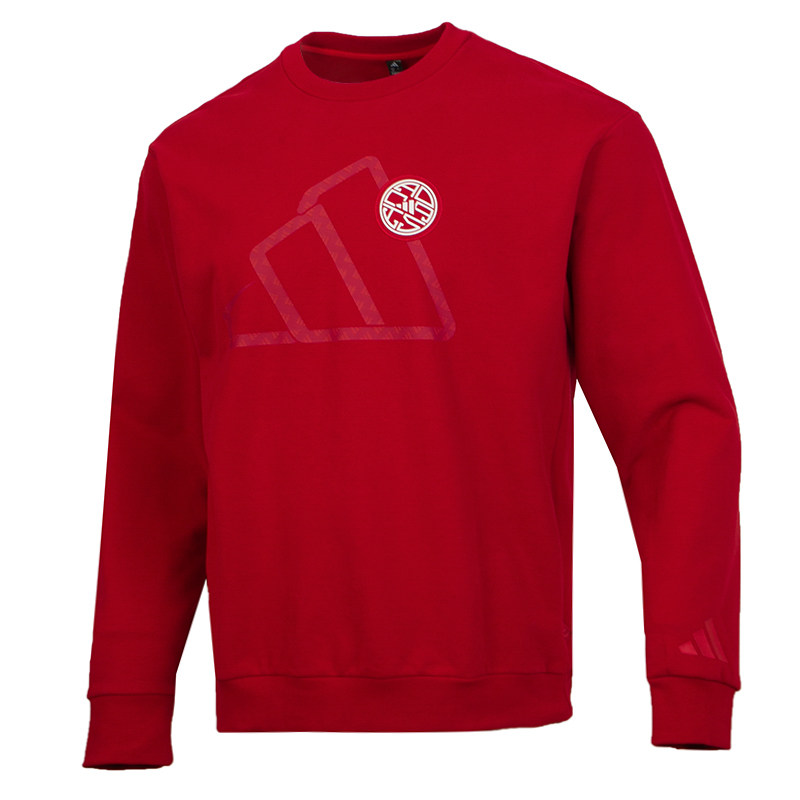 阿迪达斯本命年红色卫衣男款蛇年新年款运动服圆领长袖套头衫正品