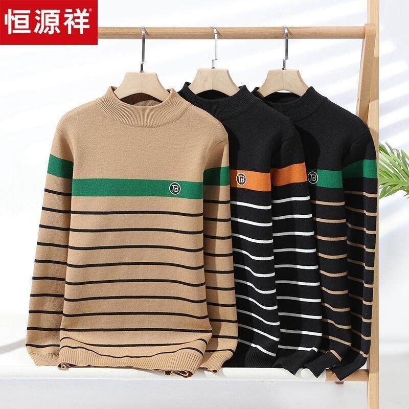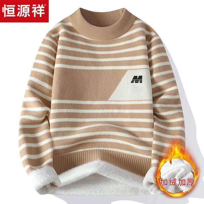 恒源祥冬季新款毛衣男条纹加绒加厚青少年高中初中学生针织羊毛衫
