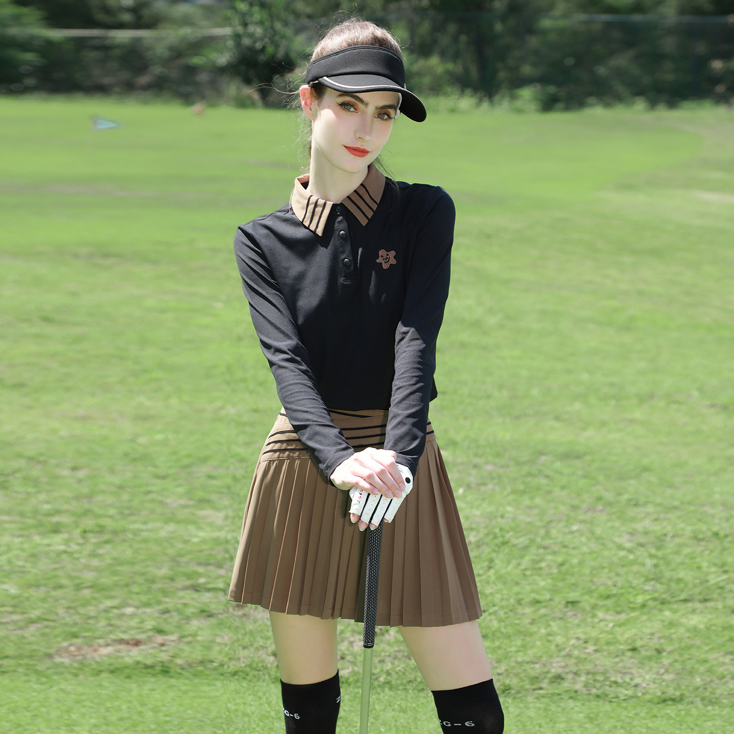ZG6高尔夫女装球服装女运动T恤显瘦黑色长袖速干上衣网球服裙子女