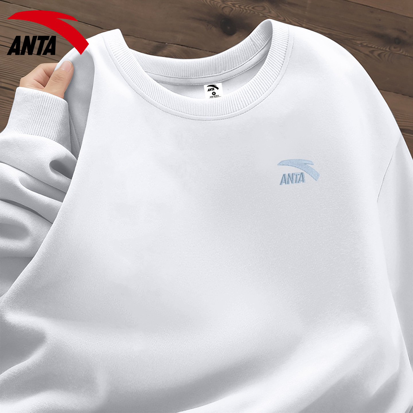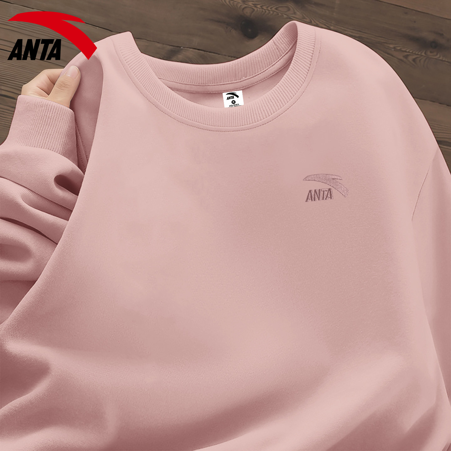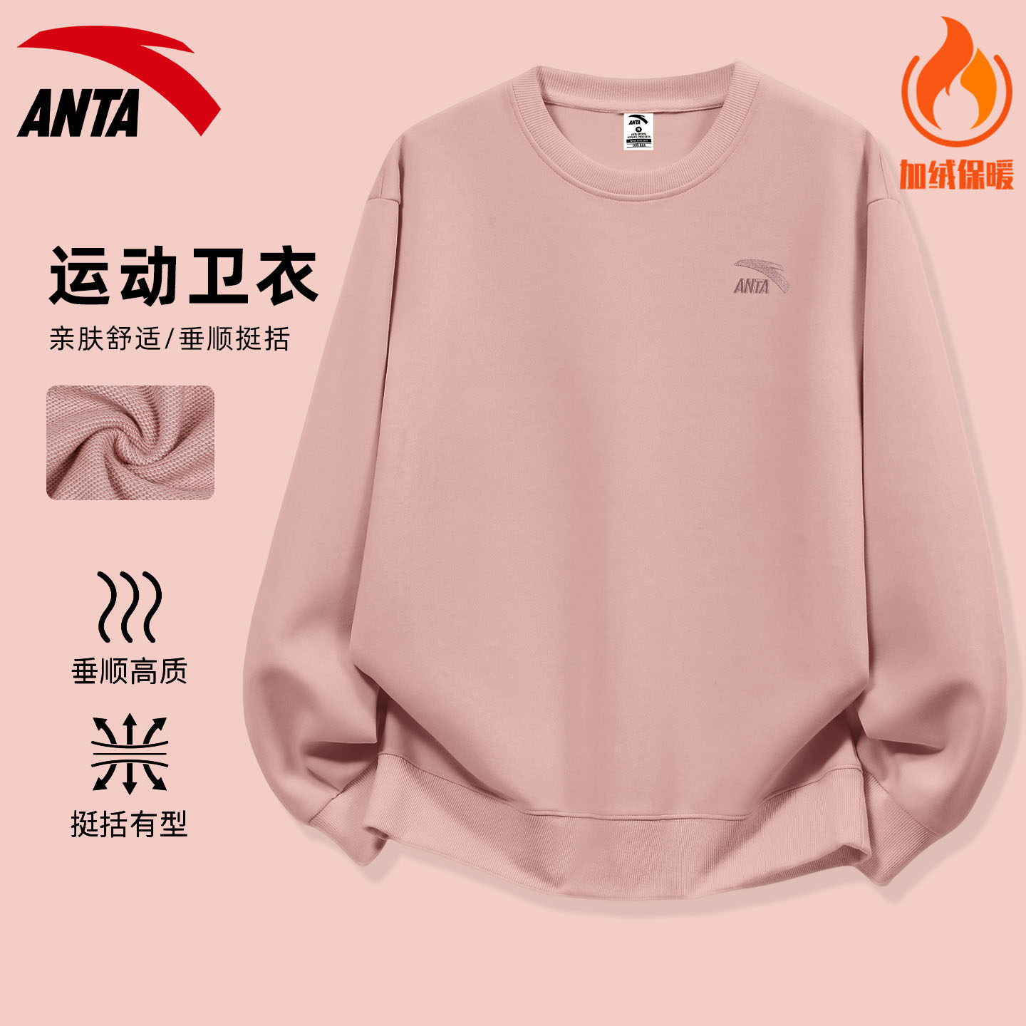 安踏圆领卫衣男女款红色喜庆百搭本命年长袖秋冬显白保暖加绒外穿