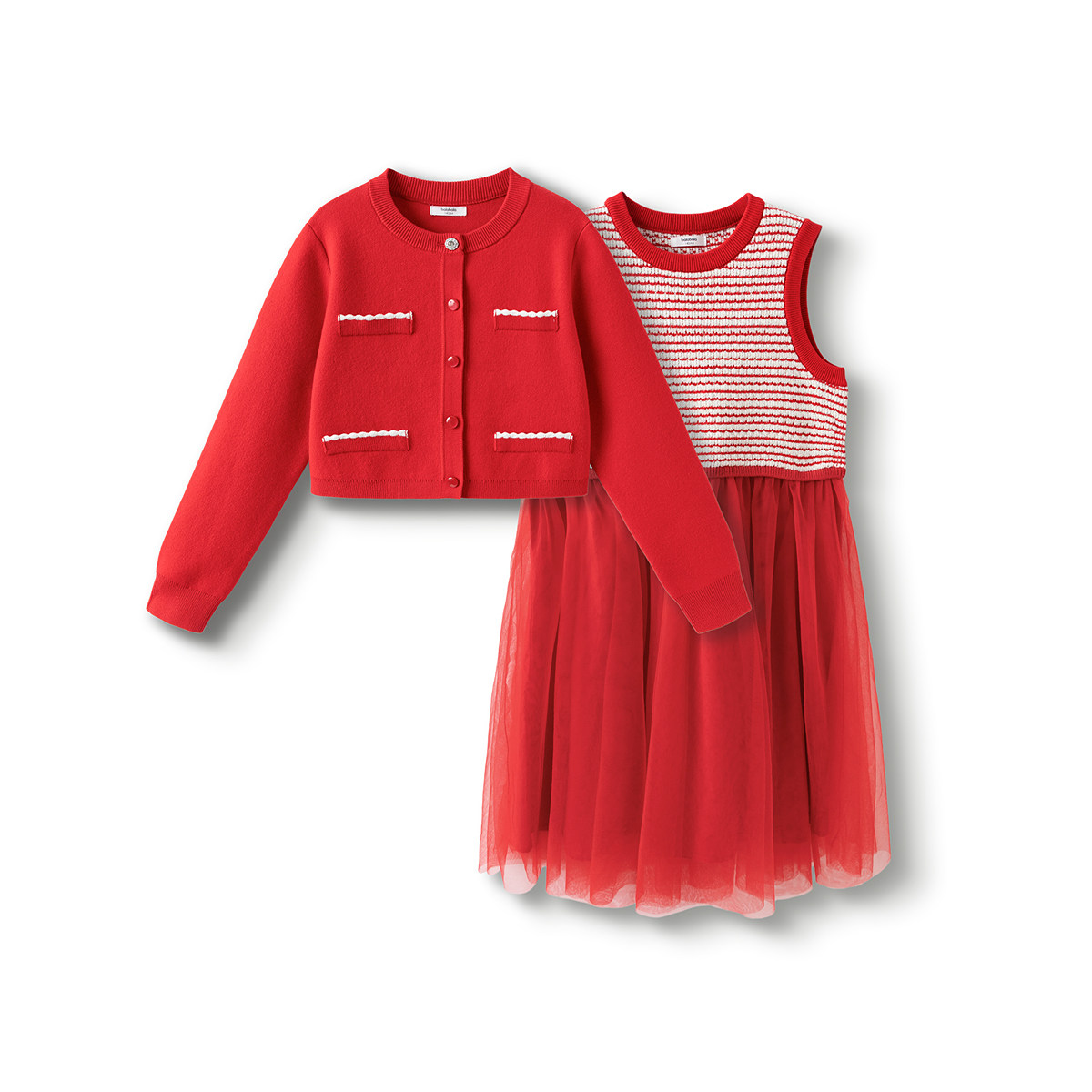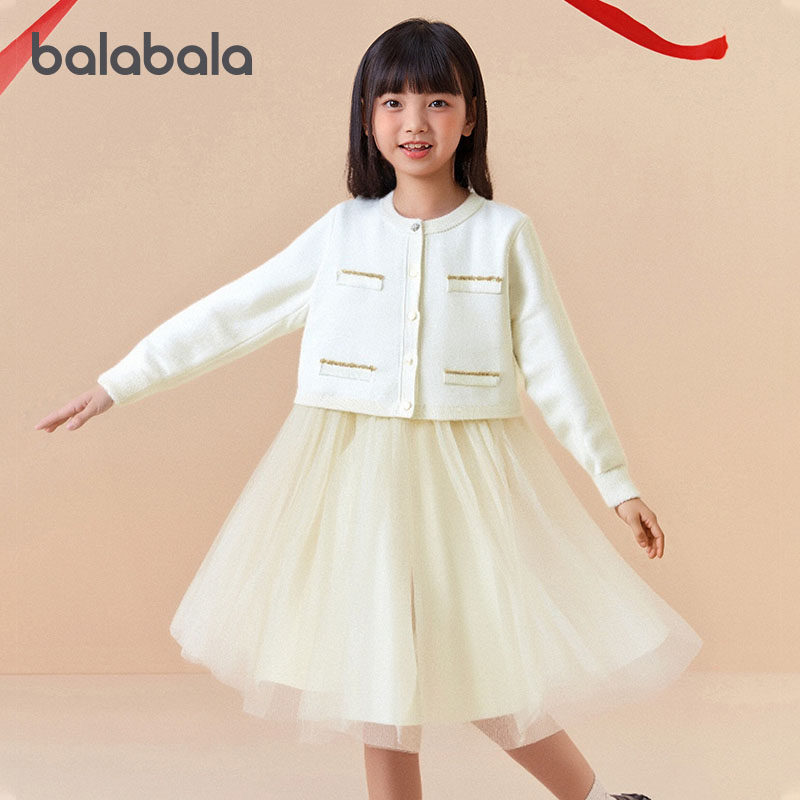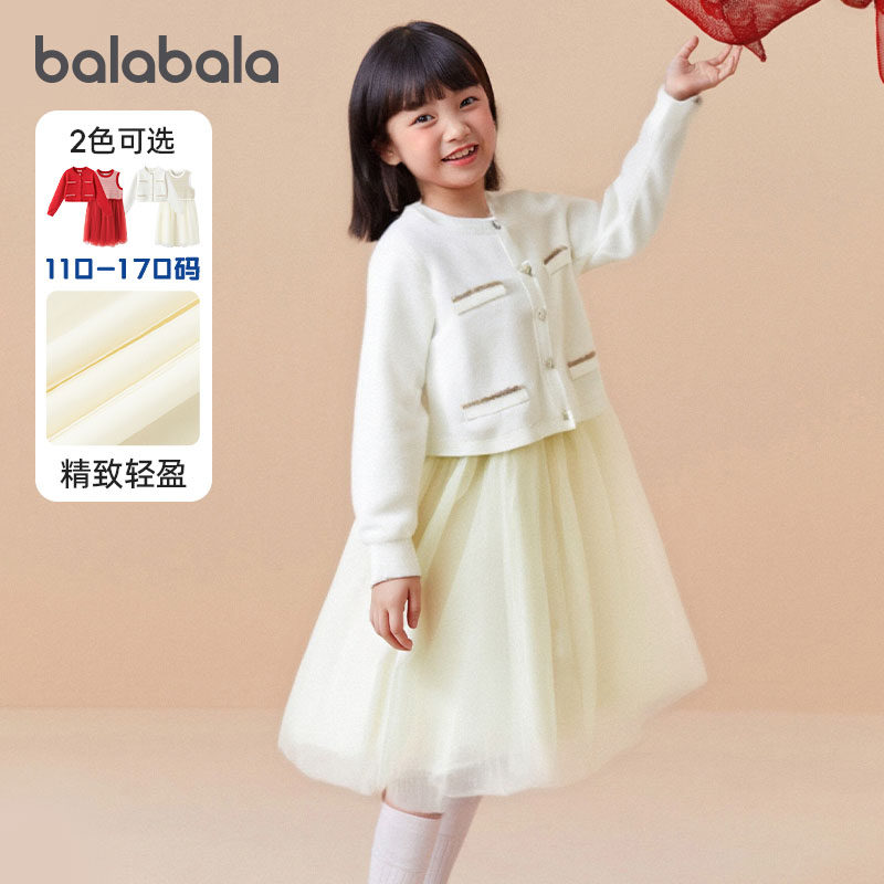 巴拉巴拉女童连衣裙纯棉内里套装大童长裙儿童新年款开衫春装童装