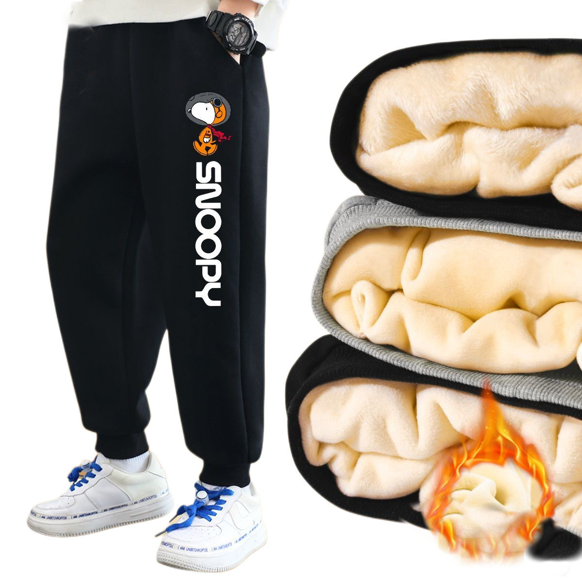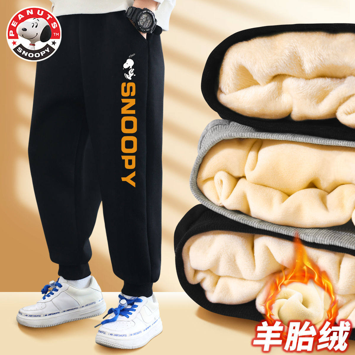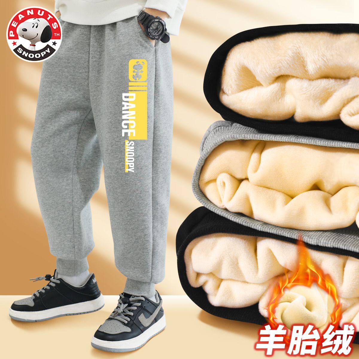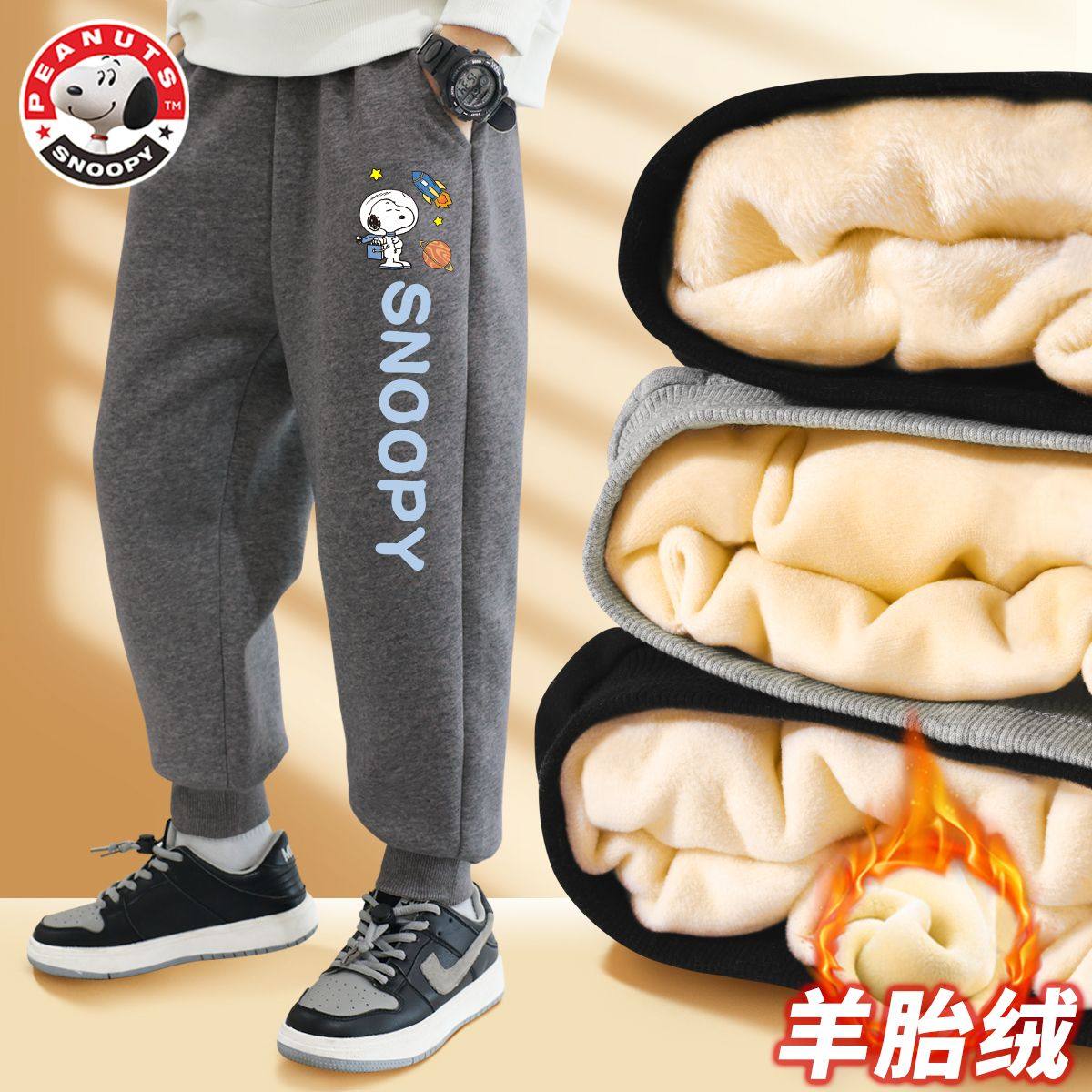 史努比男童裤子加绒加厚新款运动裤男孩卫裤冬季长裤儿童保暖裤男