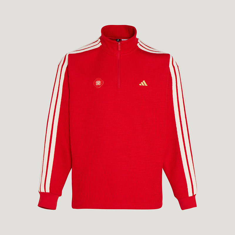 阿迪达斯卫衣26新年款红色亲肤针织男子半拉链宽松套头衫 KW4757