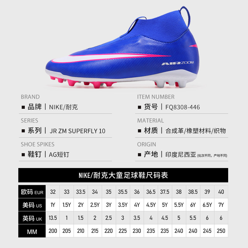 Nike耐克儿童足球鞋刺客16袜套式SUPERFLY AG短钉青少年训练球鞋