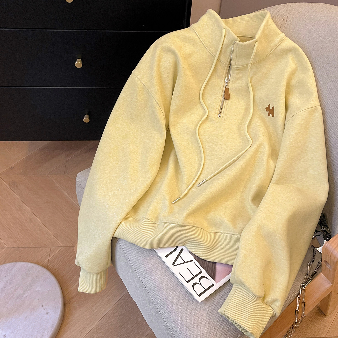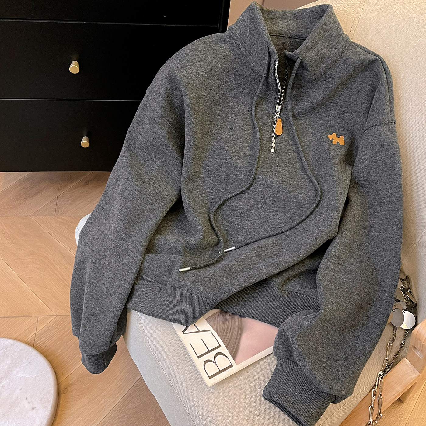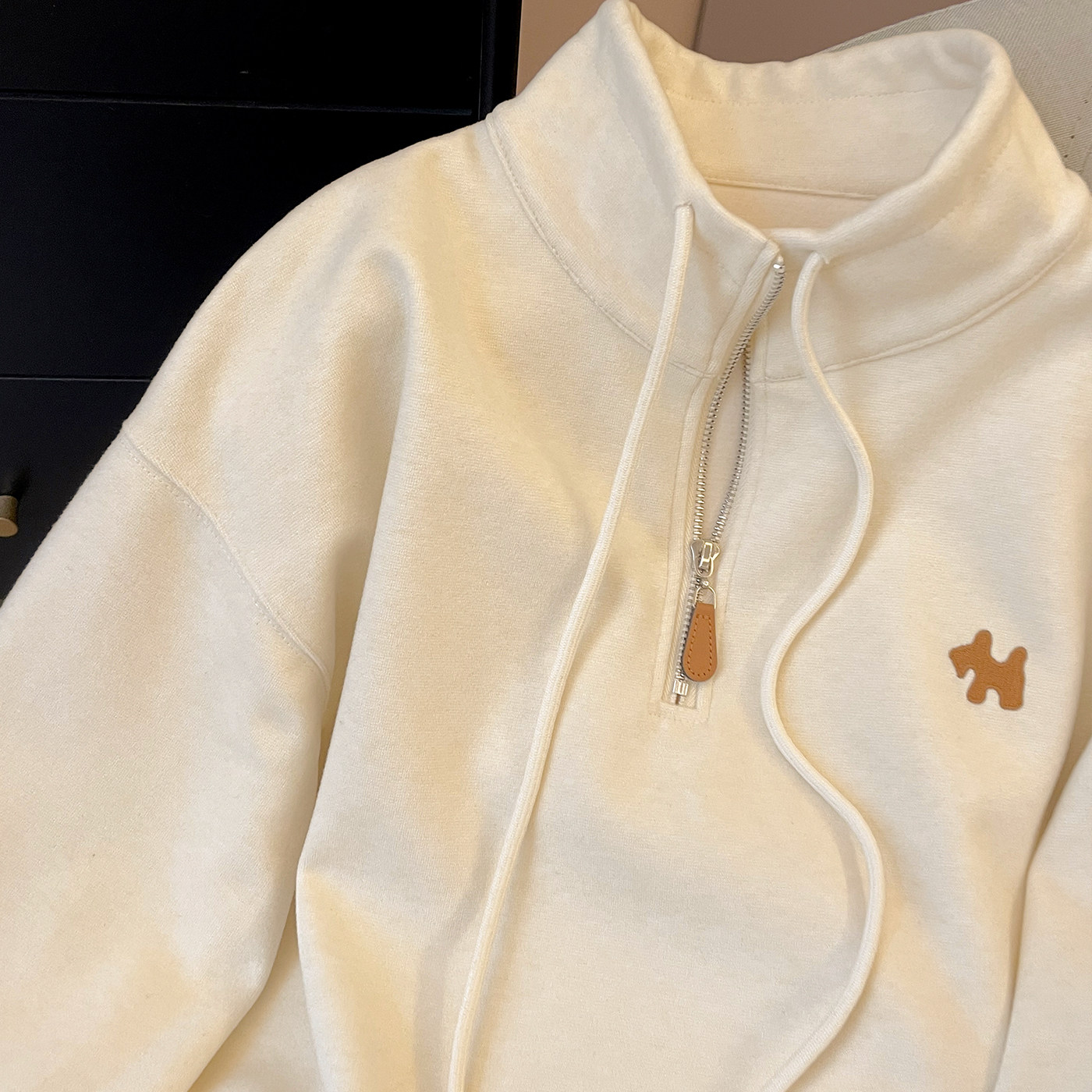 小C家 半拉链立领卫衣女款2026新款春季休闲宽松小狗刺绣套头上衣