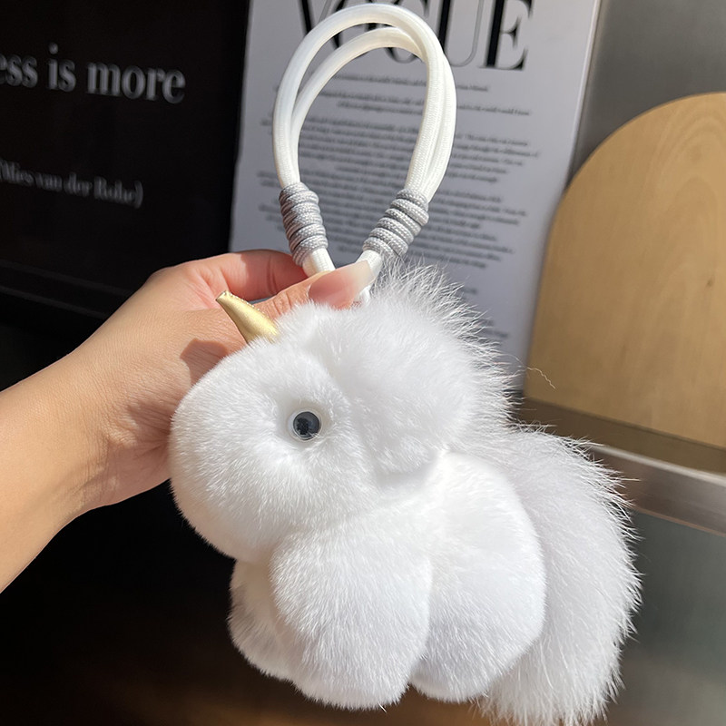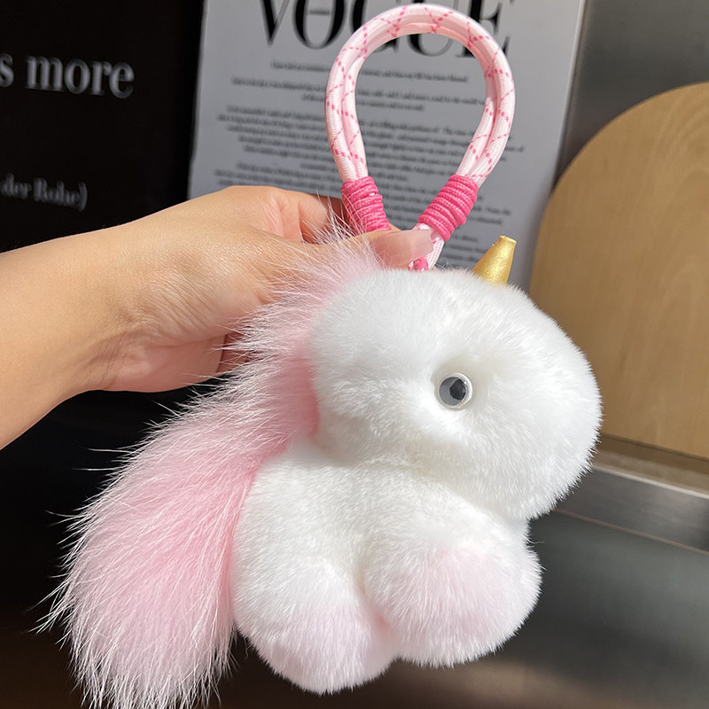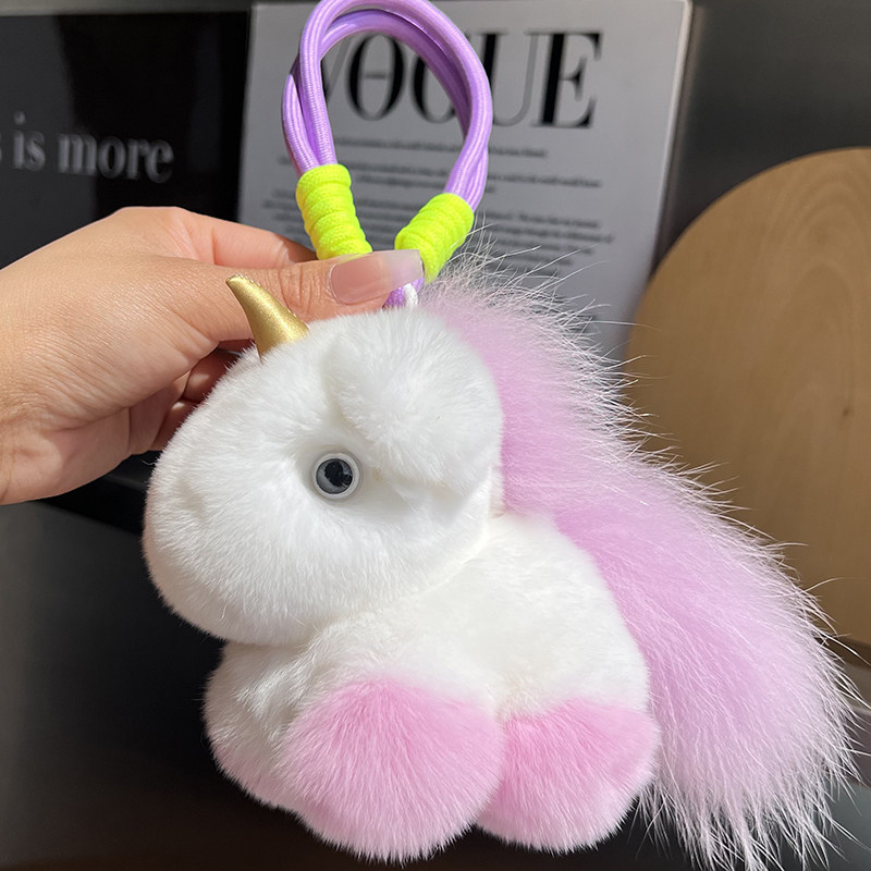 韩国ins可爱毛绒小马挂件獭兔毛独角兽包挂饰钥匙扣配饰生日礼物