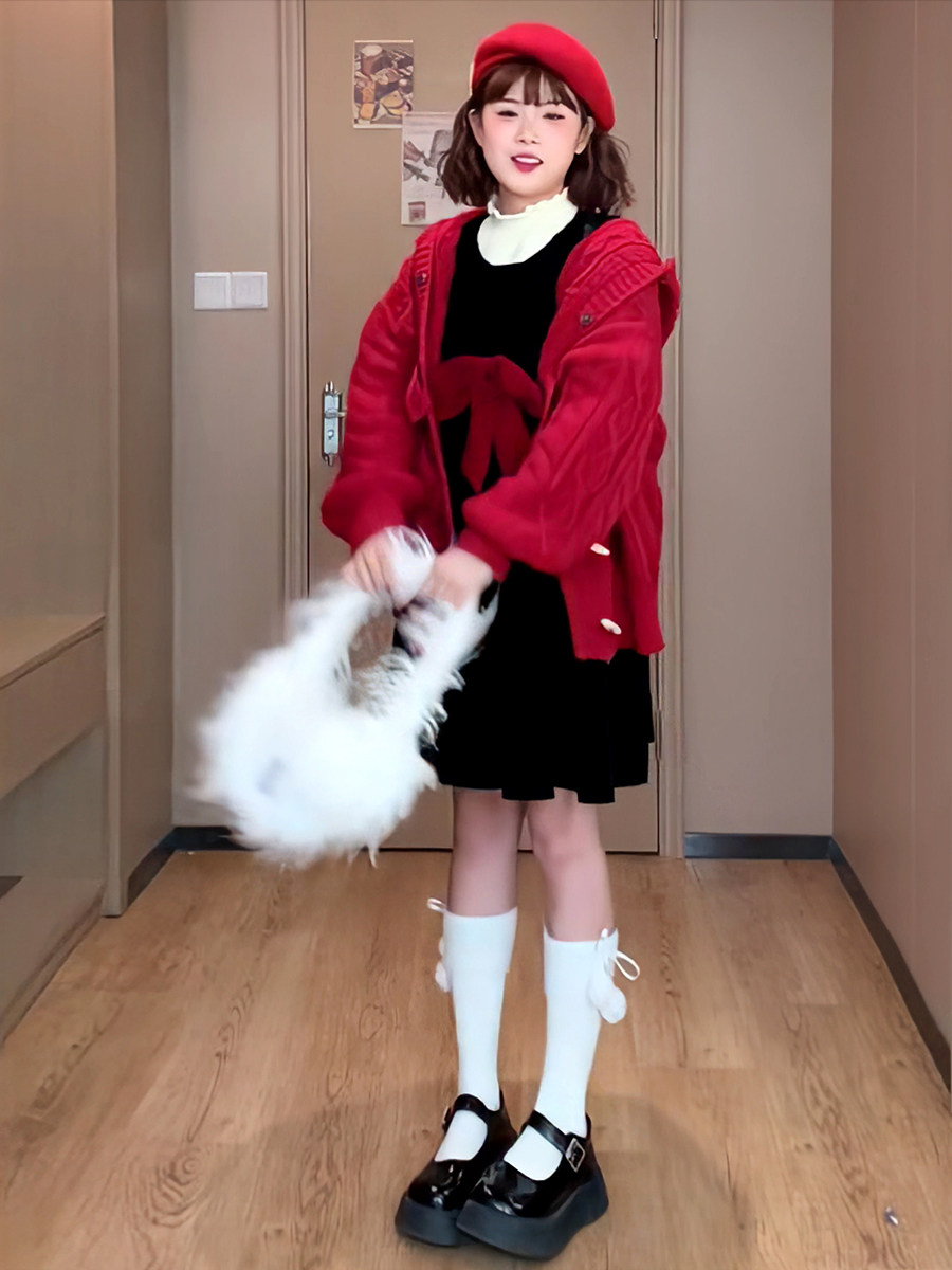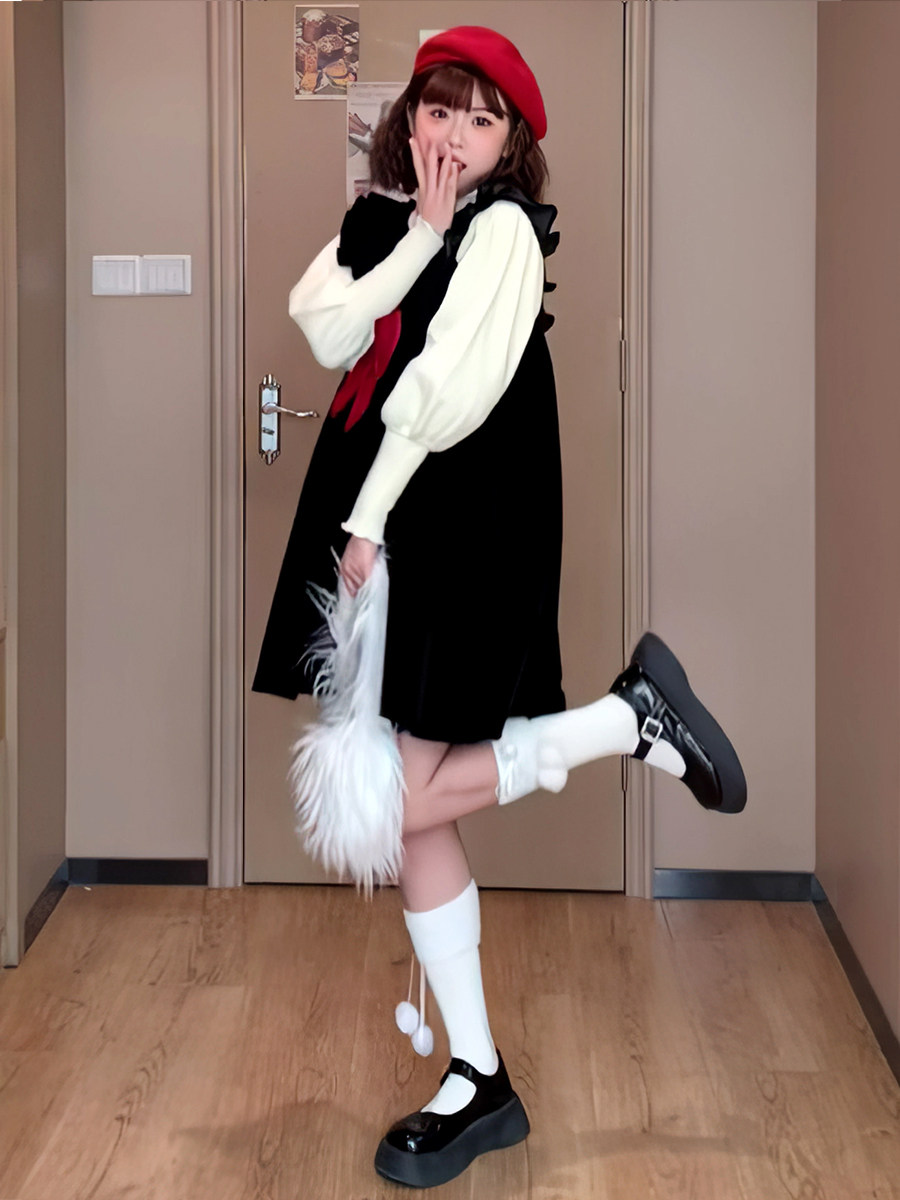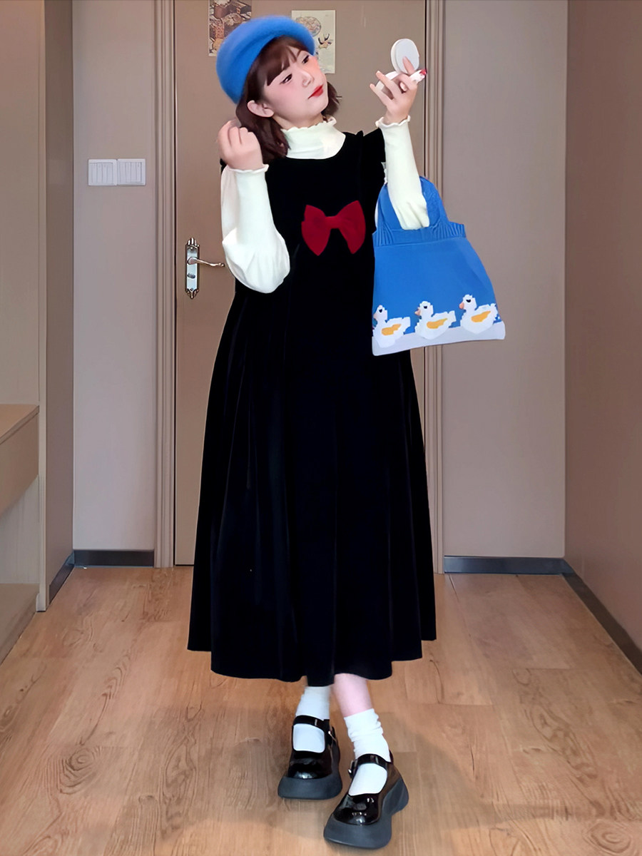 胖mm大码连衣裙女秋冬新款长短款时尚减龄蝴蝶结设计感小个子裙子