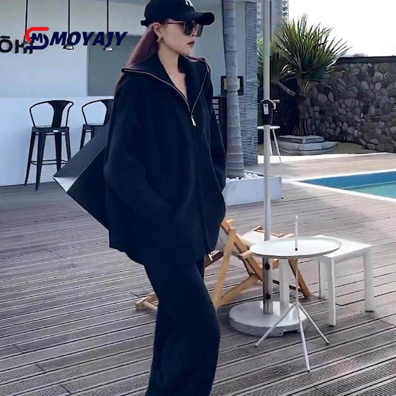 MOYAJY品牌高级感休闲时尚运动套装秋冬新款宽松加厚上衣两件套女
