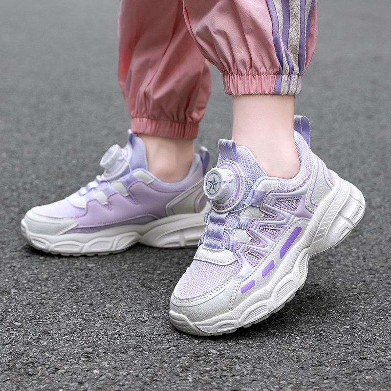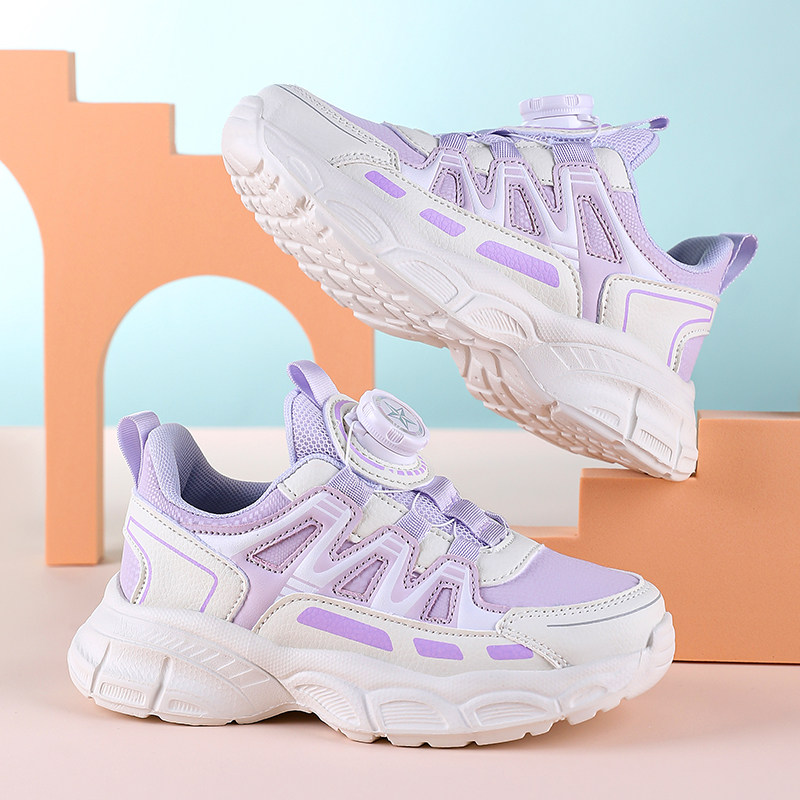2025新款女童纽扣鞋双网透气皮面防水运动鞋女孩轻便减震跑步鞋