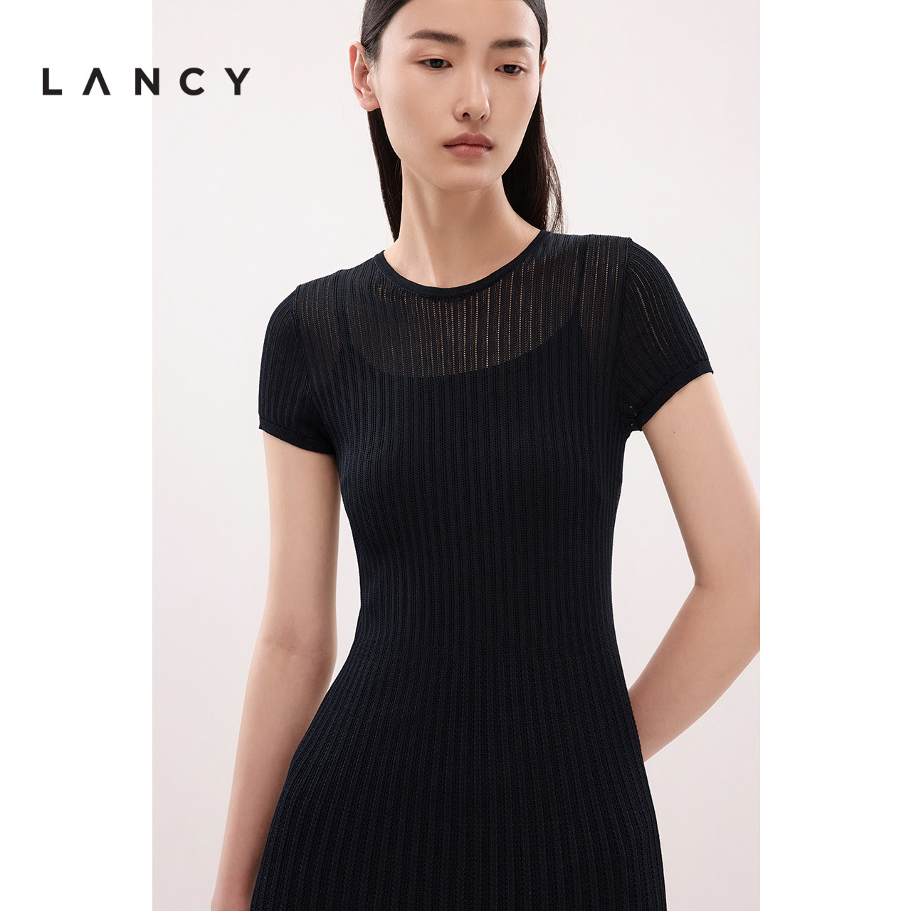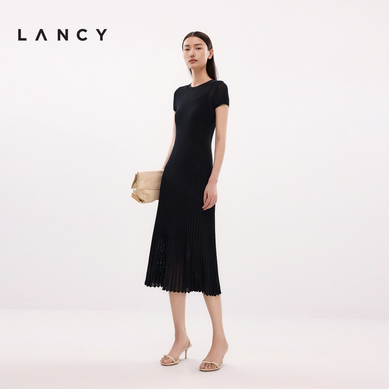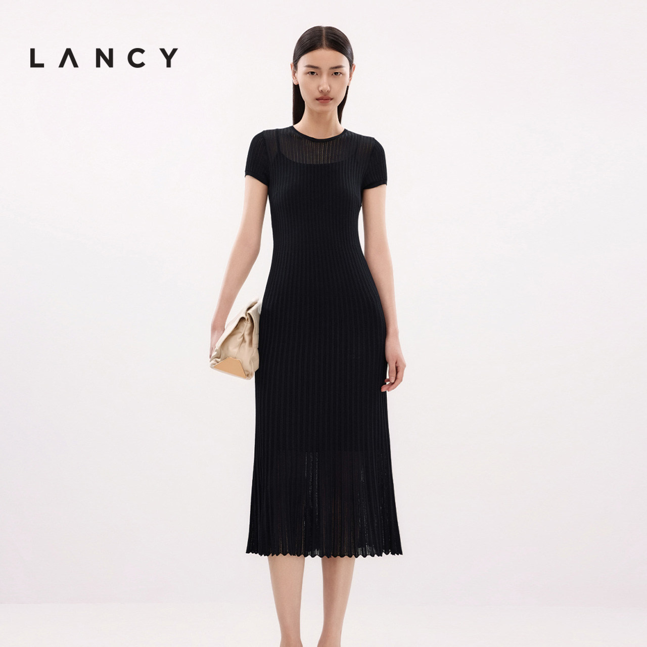 【秀场同款】LANCY/朗姿2025夏新款修身收腰中长款高级针织连衣裙
