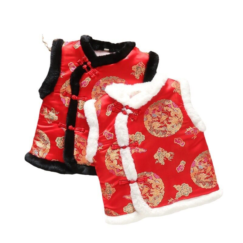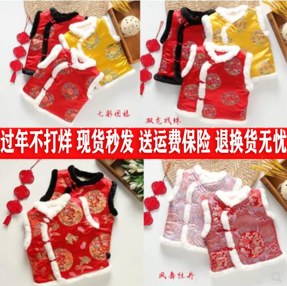 宝宝过年服唐装马甲加绒加厚婴儿新年装汉服男童女童国风拜年背心
