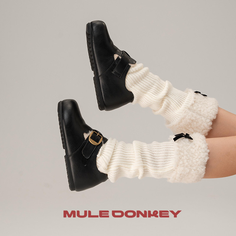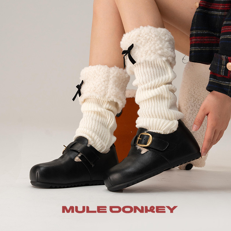 多嘴驴Donkey黑色加绒毛毛鞋女复古增高小土豆毛绒勃肯鞋通勤棉鞋