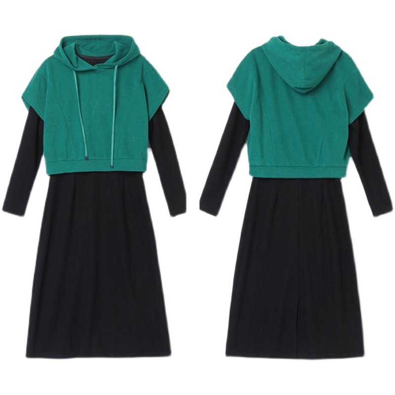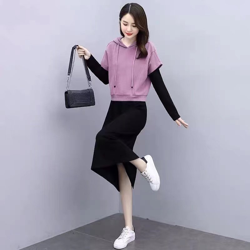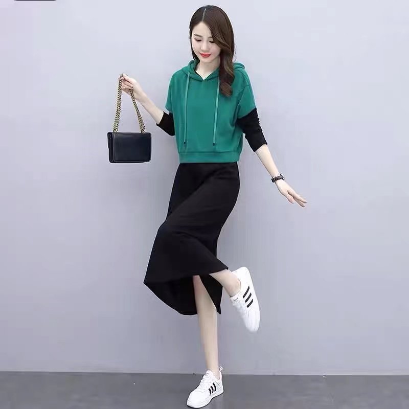 2025春季新款宽松显瘦长袖连帽卫衣时尚洋气连衣裙套装女两件套潮