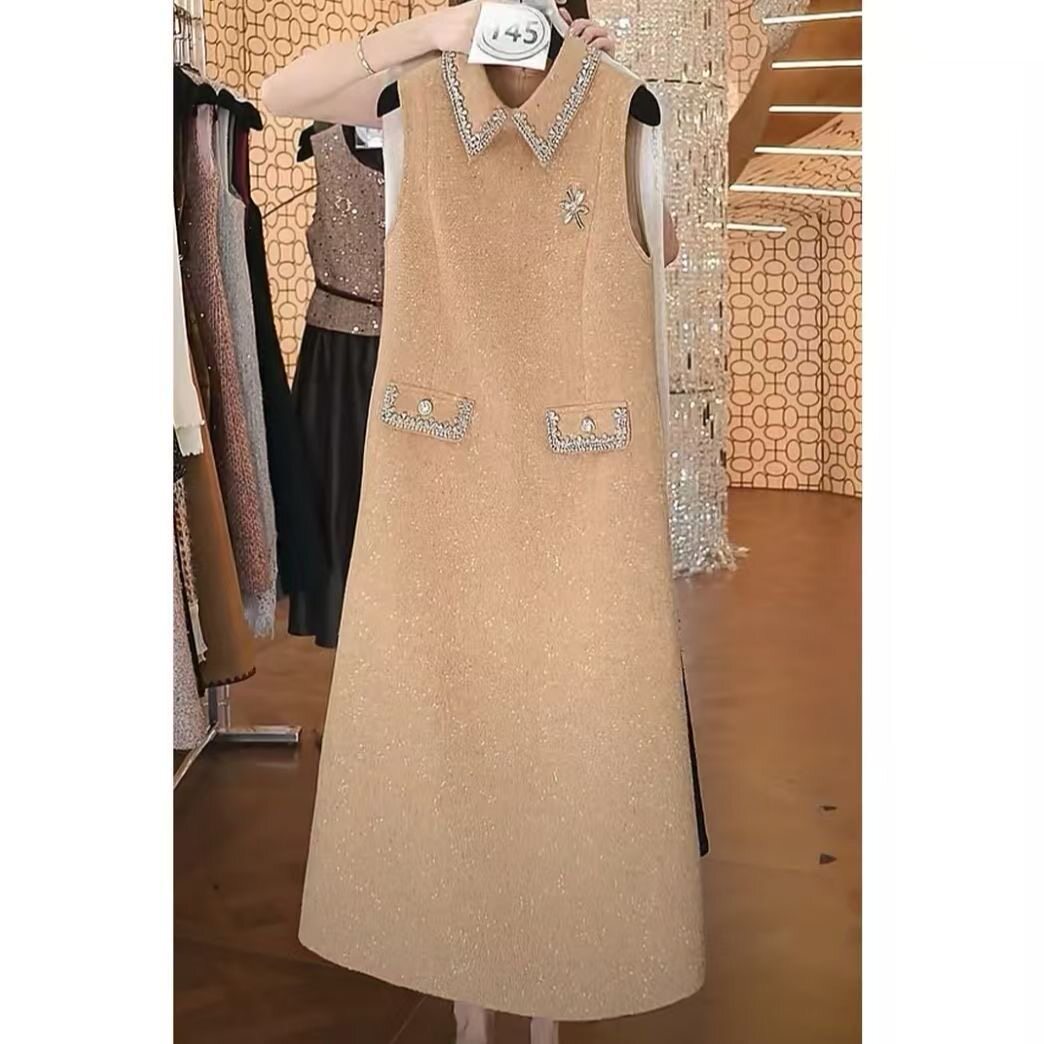 法式赫本风高级感轻奢无袖连衣裙2026年秋冬新款中长款钉珠背心裙