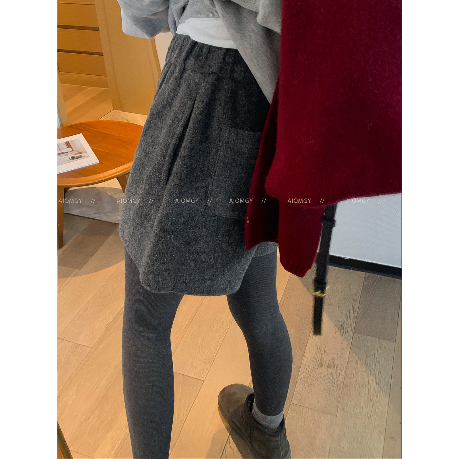 爱情魔鬼鱼灰色毛呢阔腿短裤2025冬装新款女装高级感小个子裤子