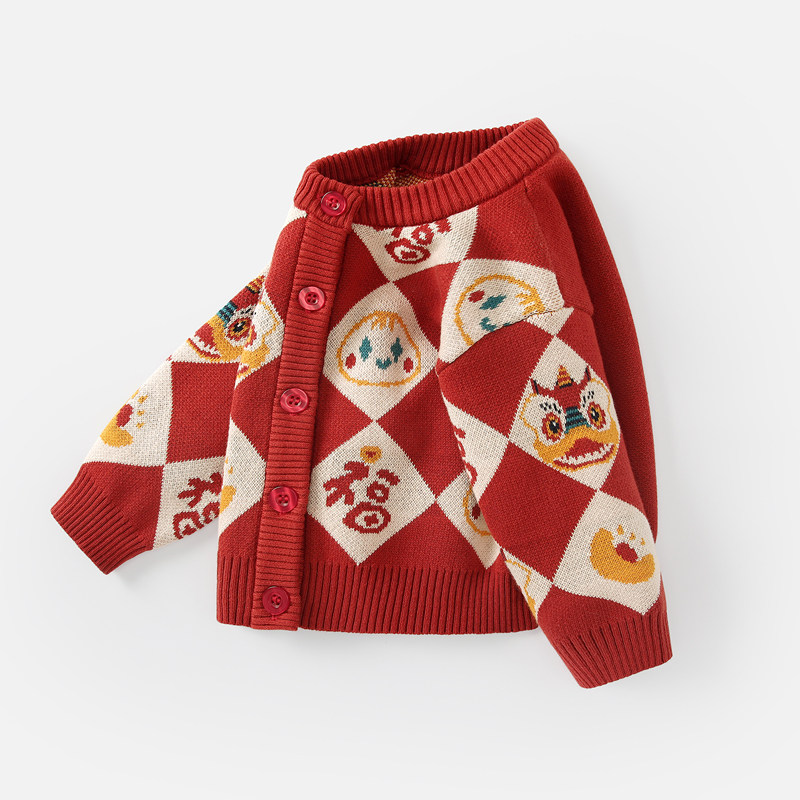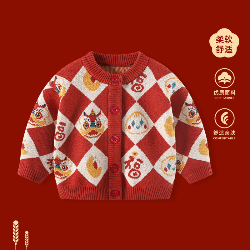 男童年服套装婴儿红色毛衣两件套宝宝过年喜庆衣服儿童新年拜年服