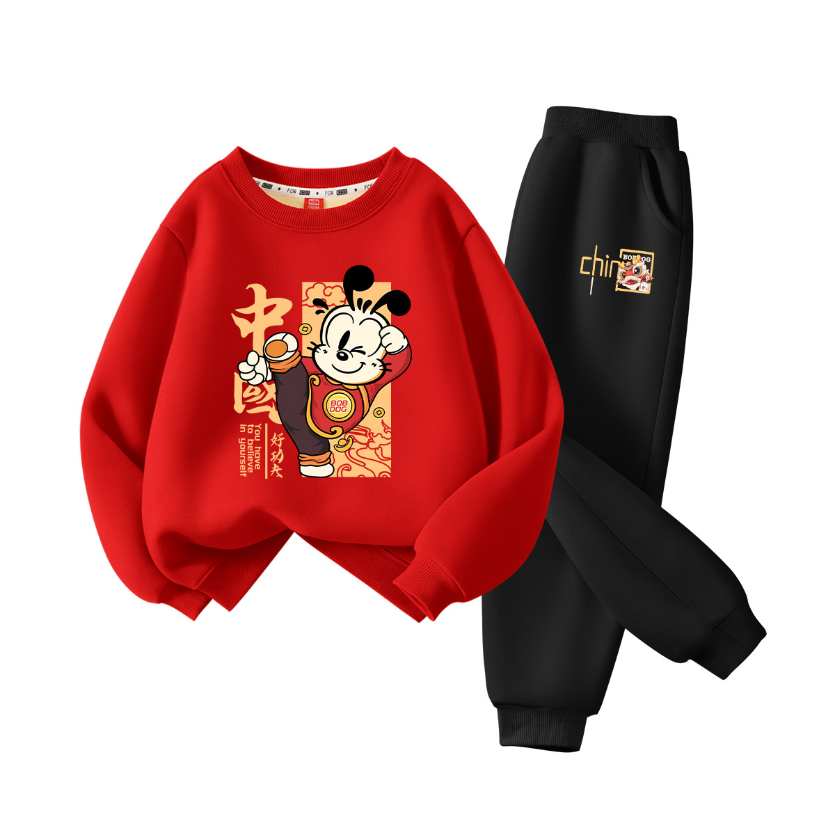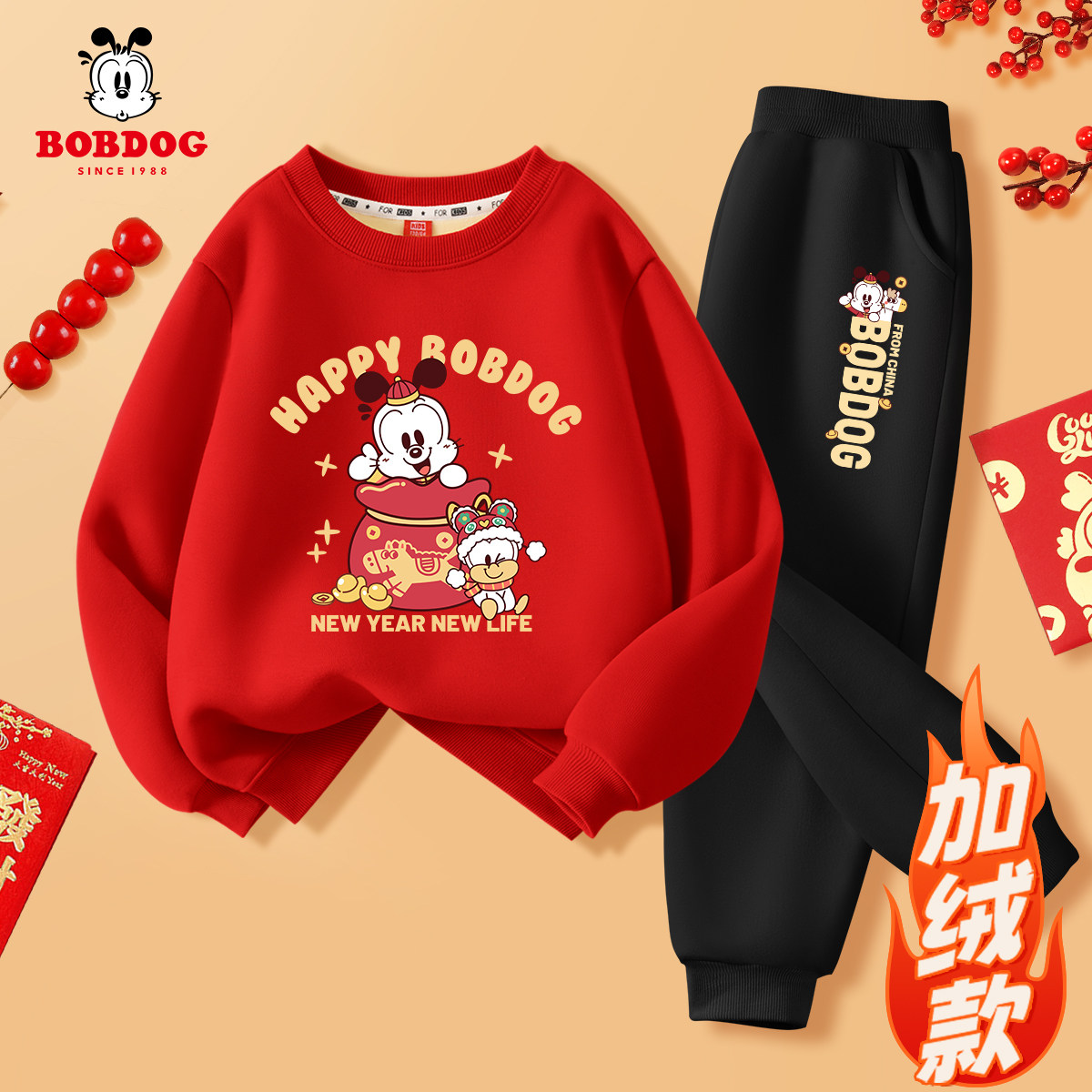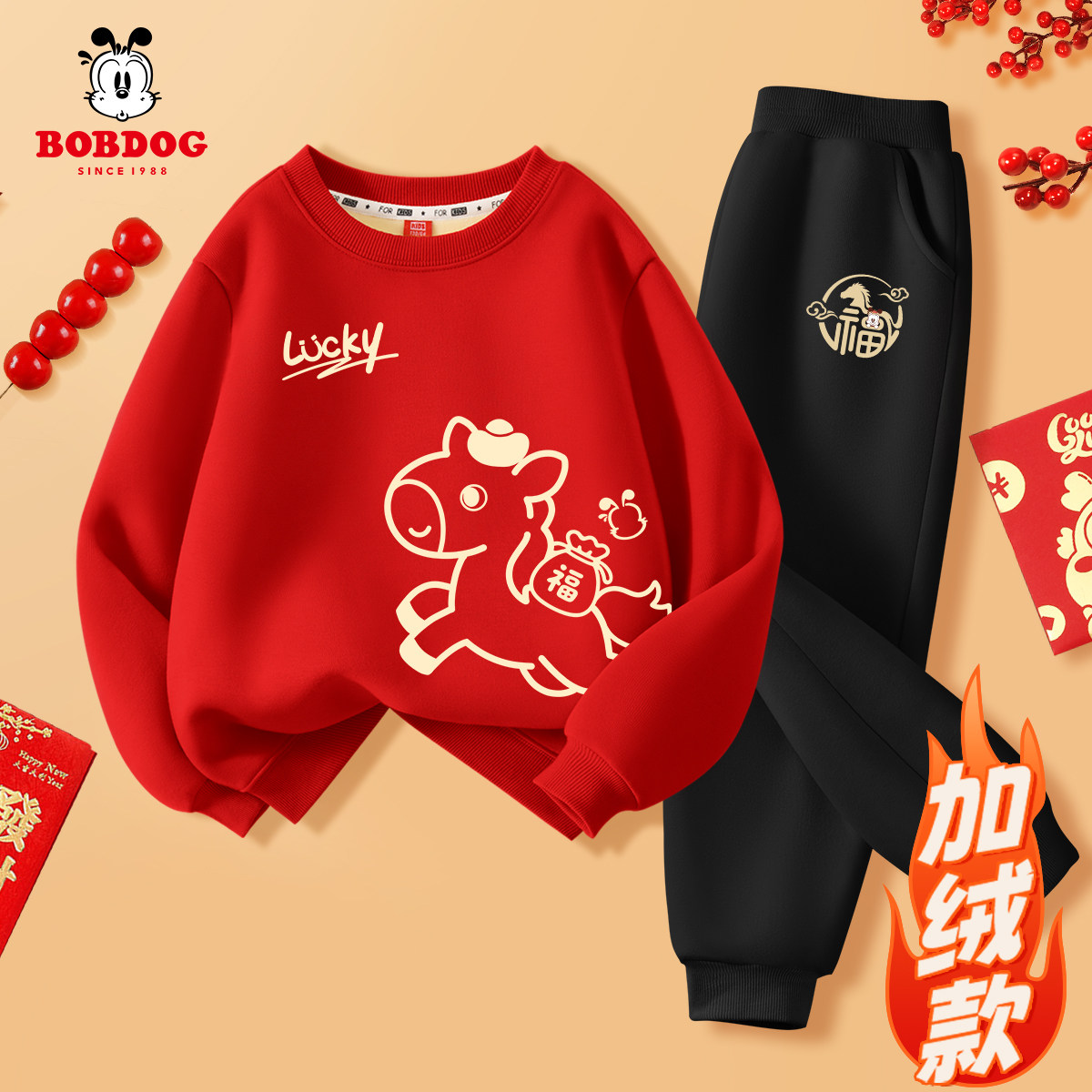 巴布豆男童拜年服冬装2026新款男宝红色喜庆唐装套装儿童新年衣服