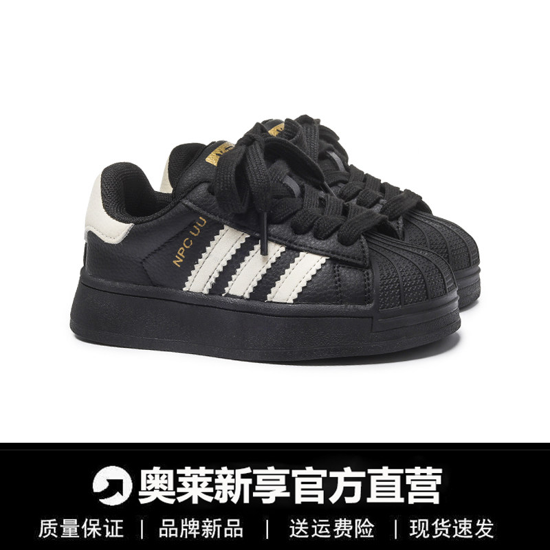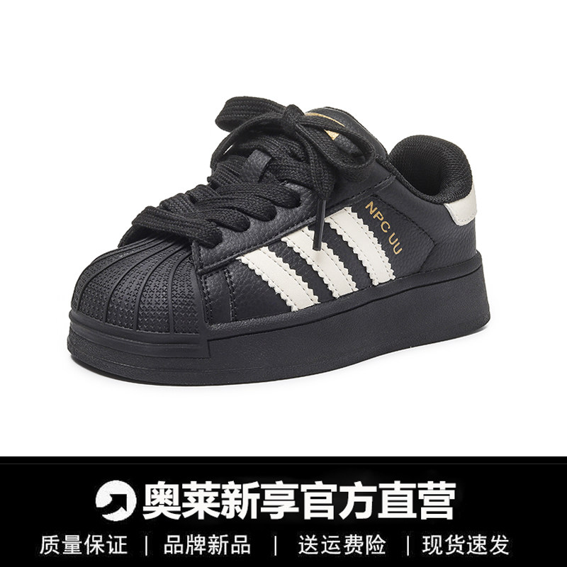2026新款儿童贝壳头板鞋女童运动鞋黑色男童跑步鞋加绒高帮德训鞋