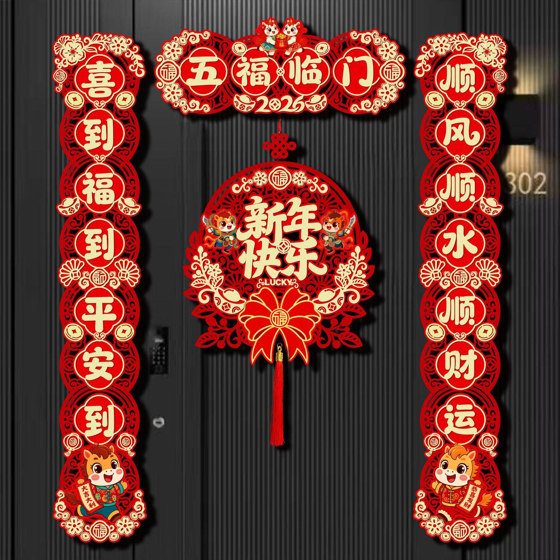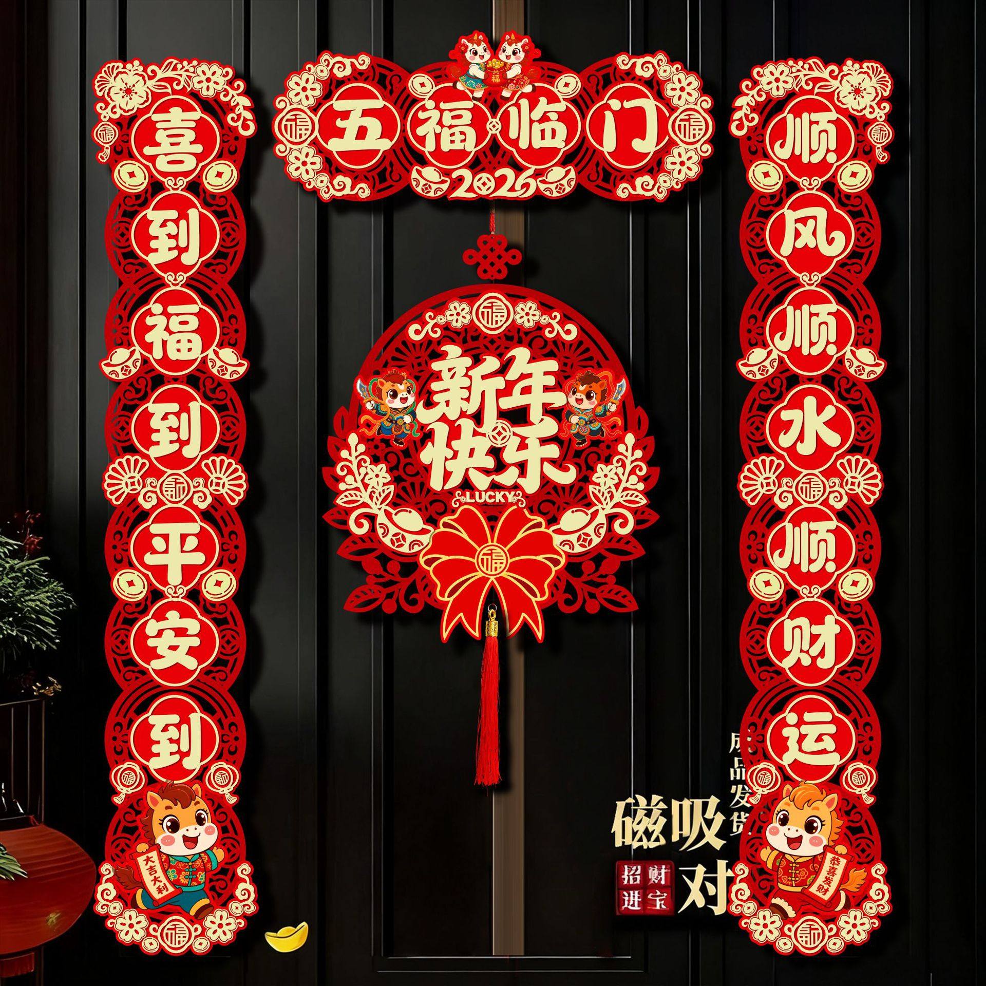 马年创意对联磁吸套装新年春节过年入户福字门贴植绒春联对联铺货