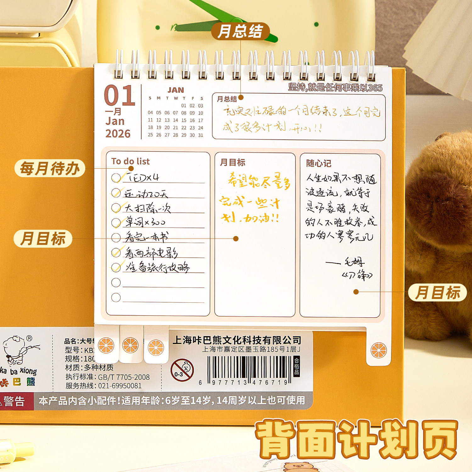 台历2026年新款卡皮巴拉卡通转盘日历本原创创意办公桌面摆件马年计划记事本备忘录学生自律打卡中高考倒计时
