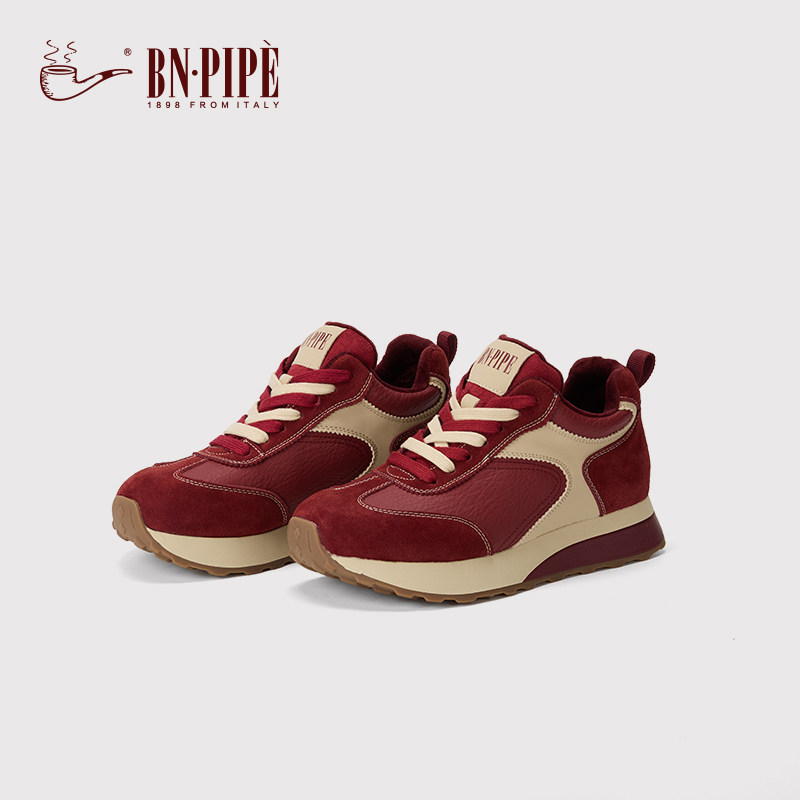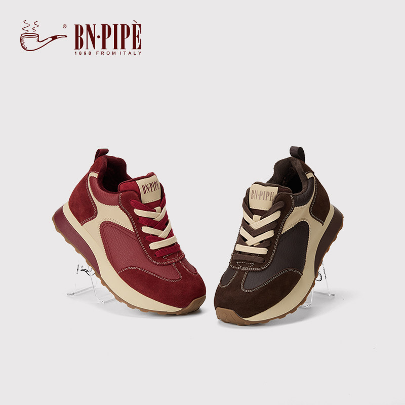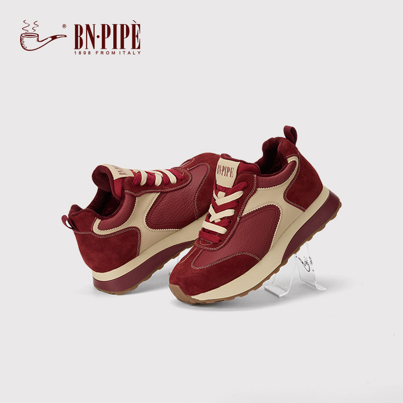 百年烟斗加绒复古红色德训鞋女款2025冬季新款休闲运动鞋平底女鞋