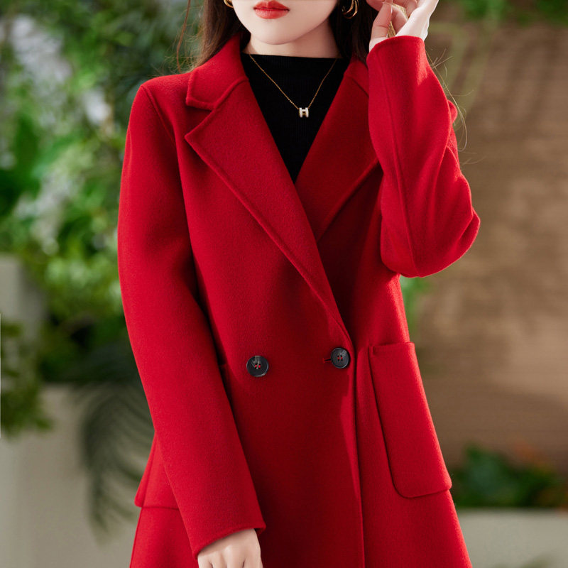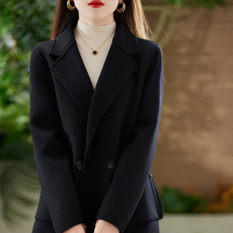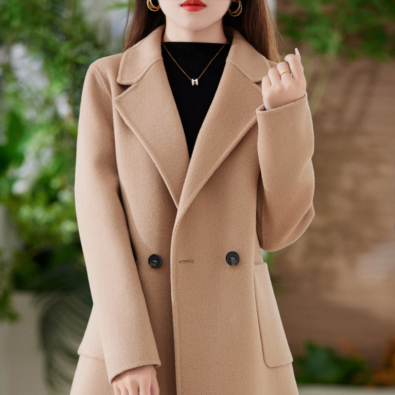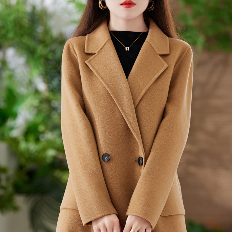 双面羊绒大衣女小个子秋冬新款两粒扣羊毛中长款毛呢外套赫本风