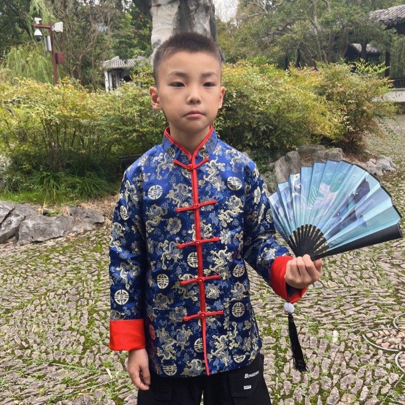 儿童唐装薄款男童拜年服中国风中大童宝宝新年装春装民族风外套潮