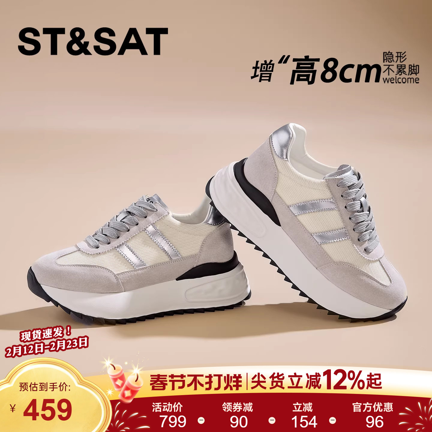 星期六8CM轻便隐形内增高板鞋女款厚底百搭休闲德训鞋子阿甘女鞋