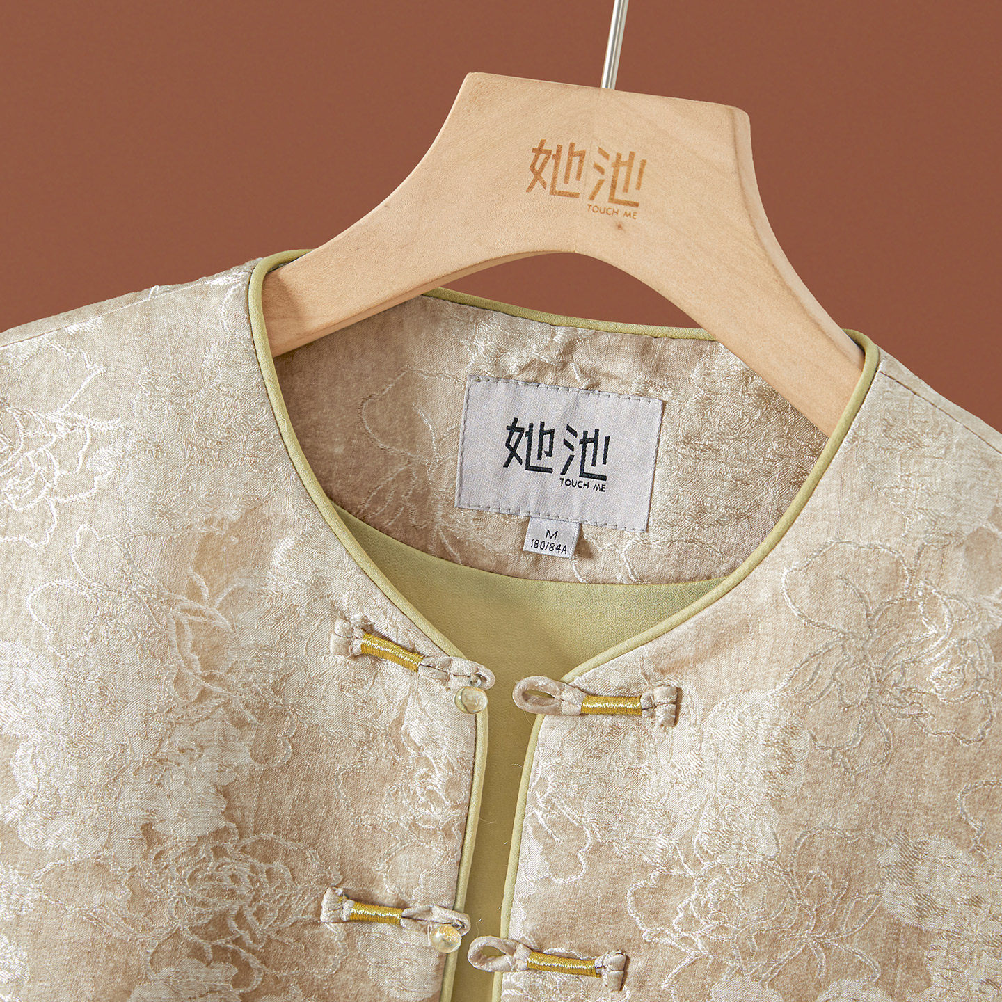 她池新中式马夹2026春装新款女装复古国风圆领盘扣短款叠穿马甲
