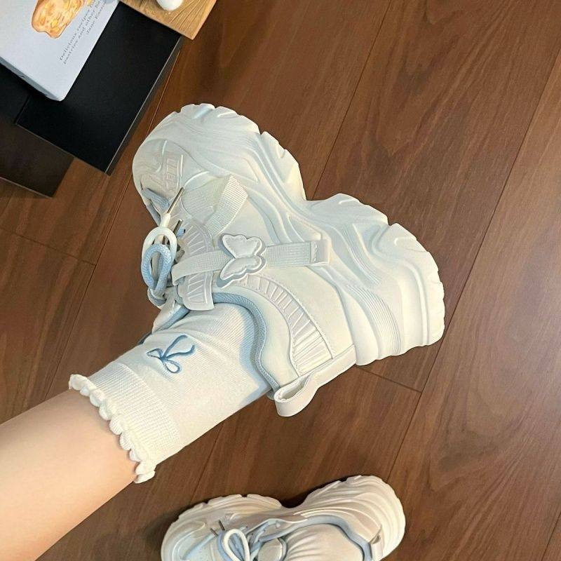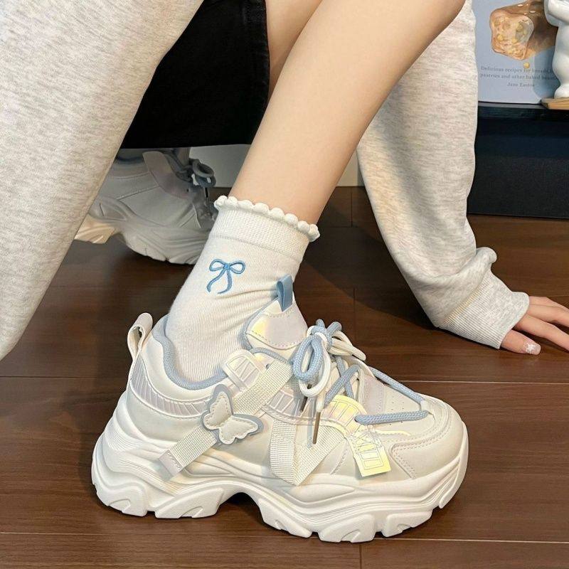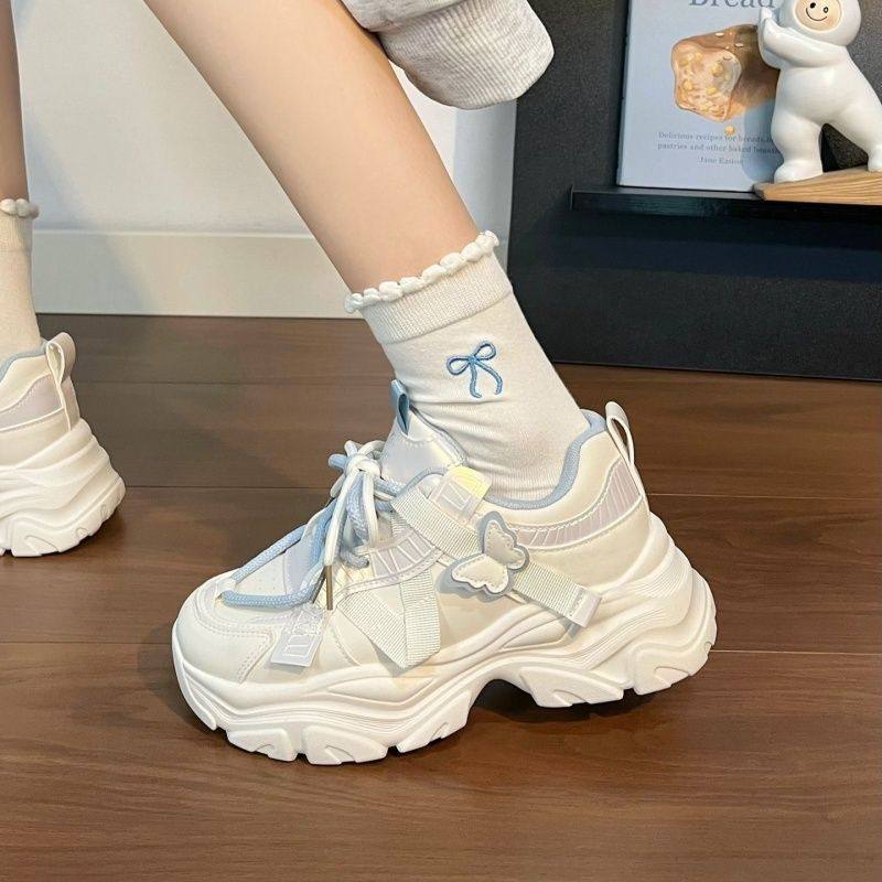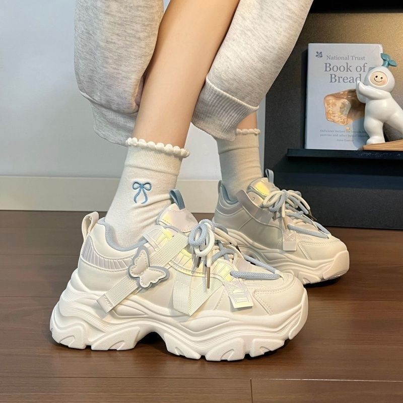 女童鞋子春季2026新款学生休闲运动鞋中大童女孩蝴蝶厚底老爹鞋子