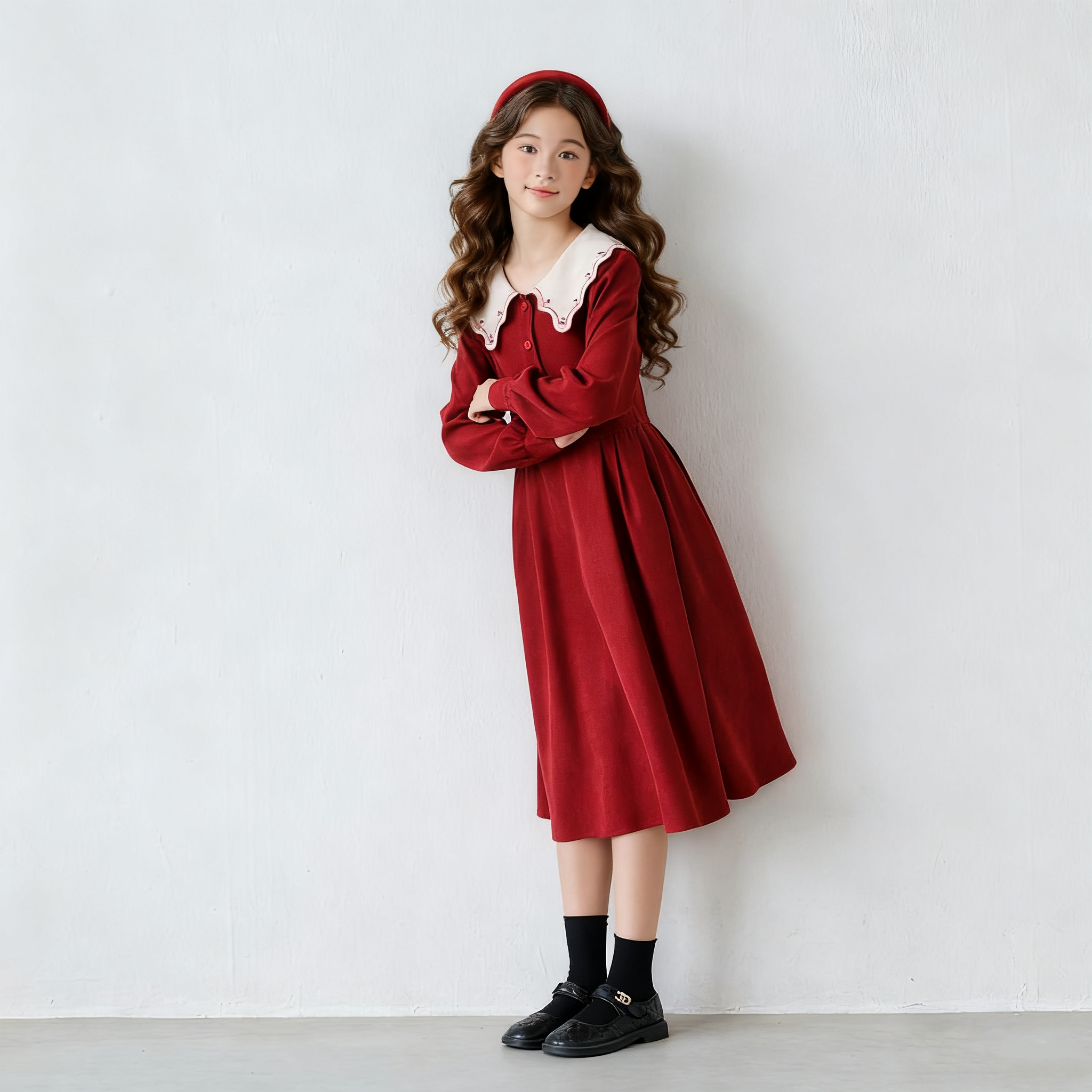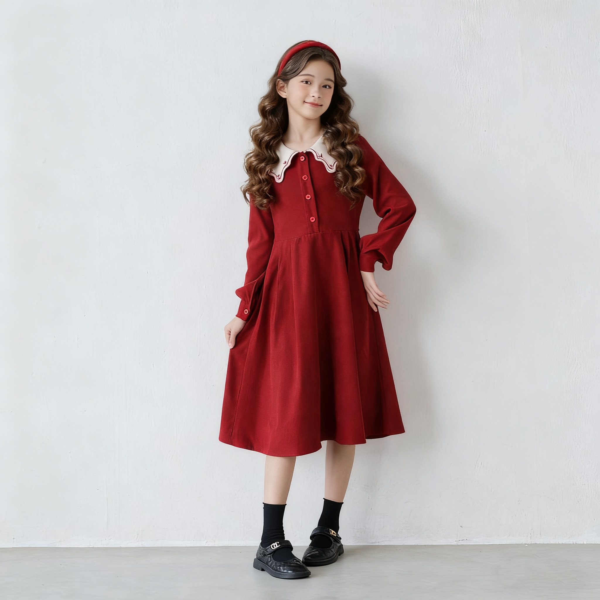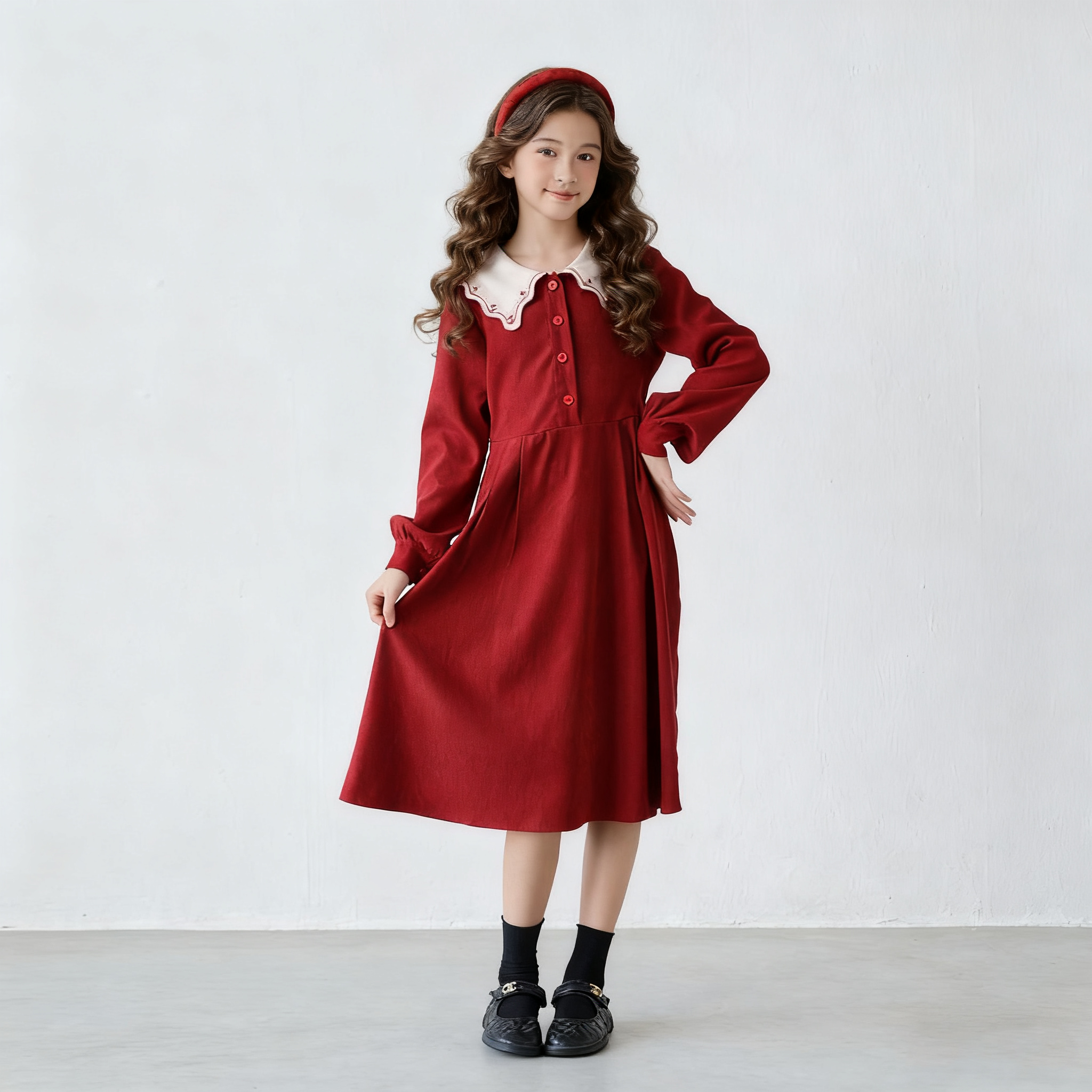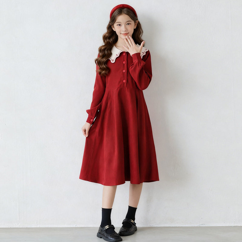 红色法式文艺长袖连衣裙女童秋冬季2025新款甜美裙子喜庆加绒冬裙