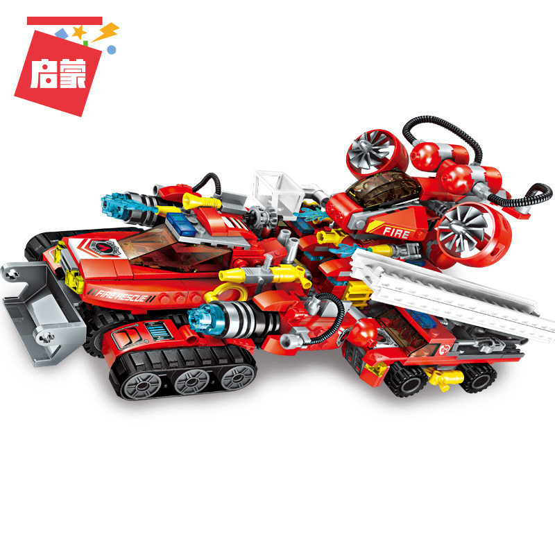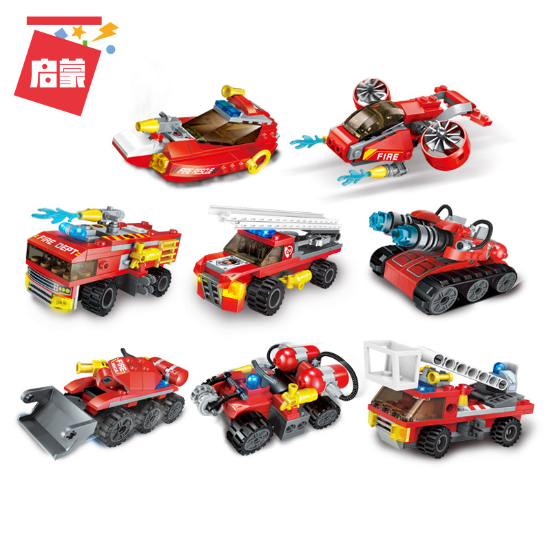 启蒙消防8合1极限救援战车组装模型男孩拼装积木拼插玩具礼物1410