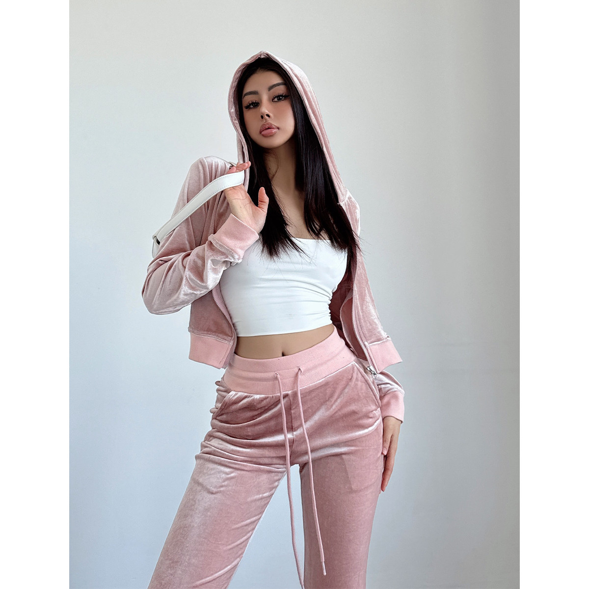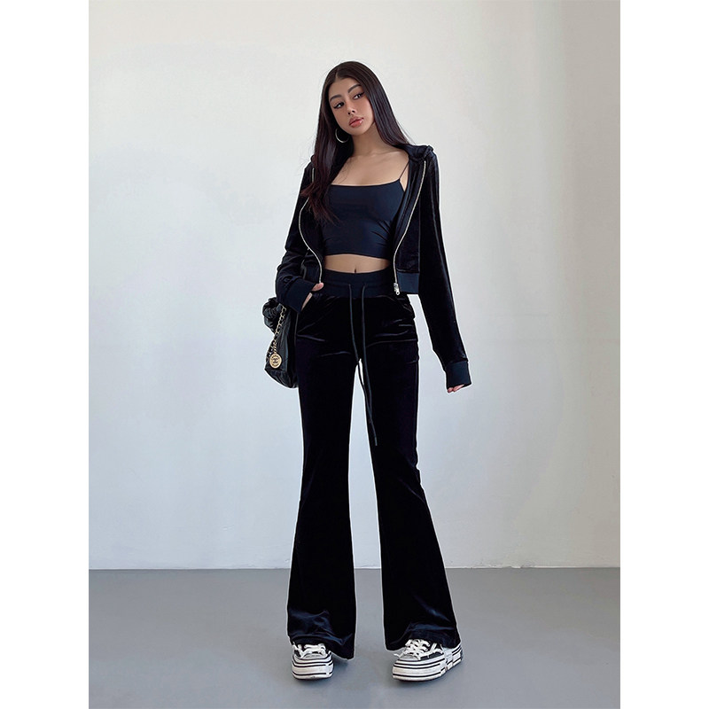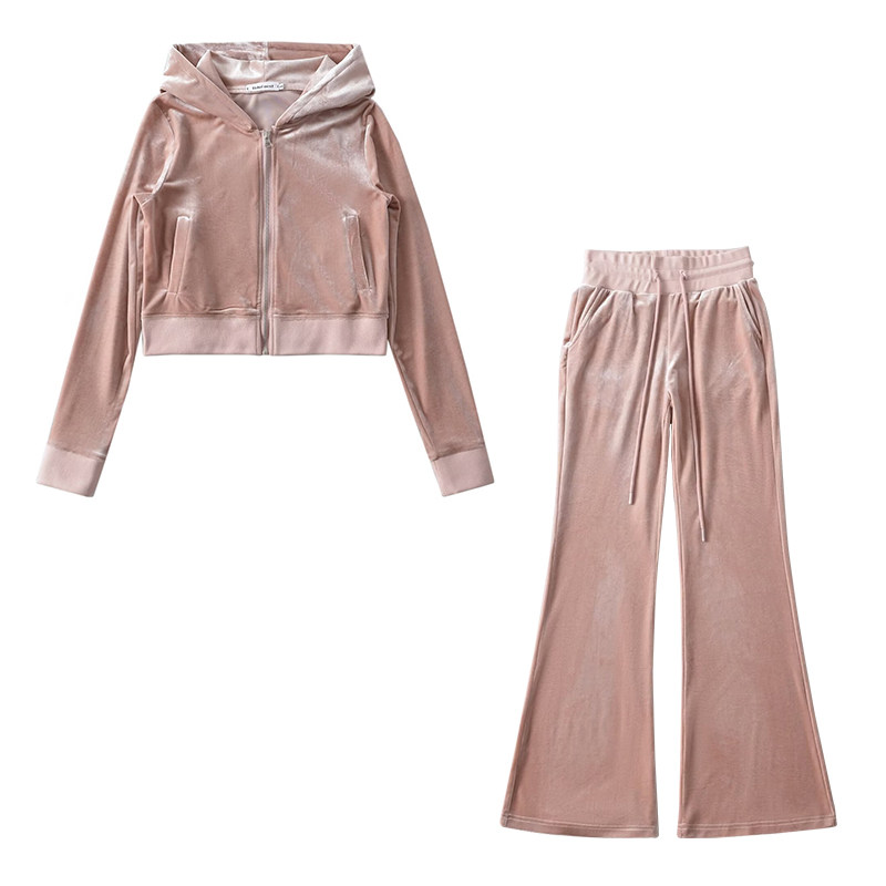 liviahome美式辣妹丝绒运动休闲套装女秋冬新款上衣长裤两件套