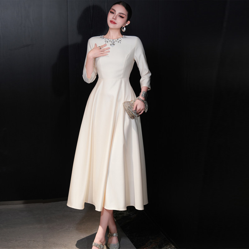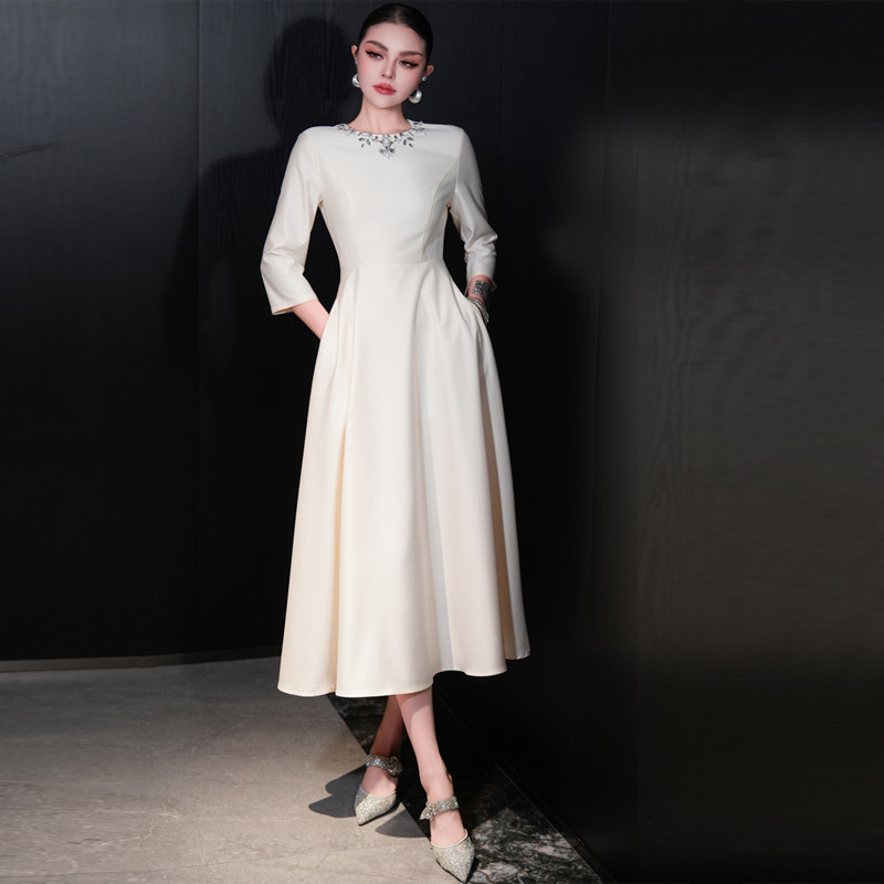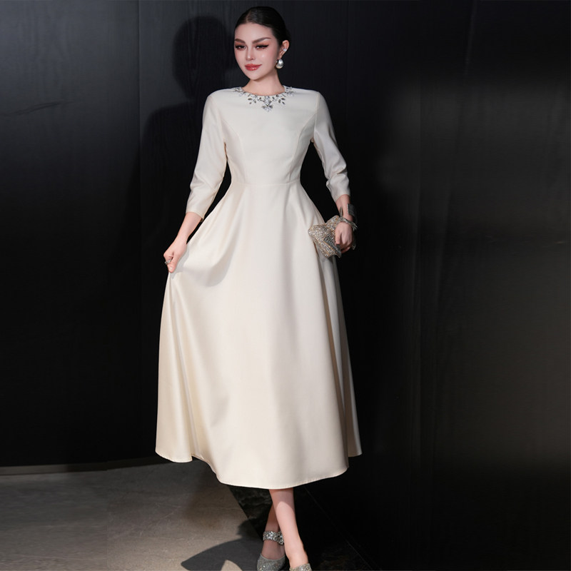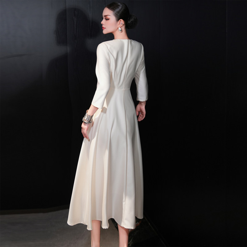 欧货女装春秋季新款高端大牌轻奢长裙法式修身中长款白色连衣裙女