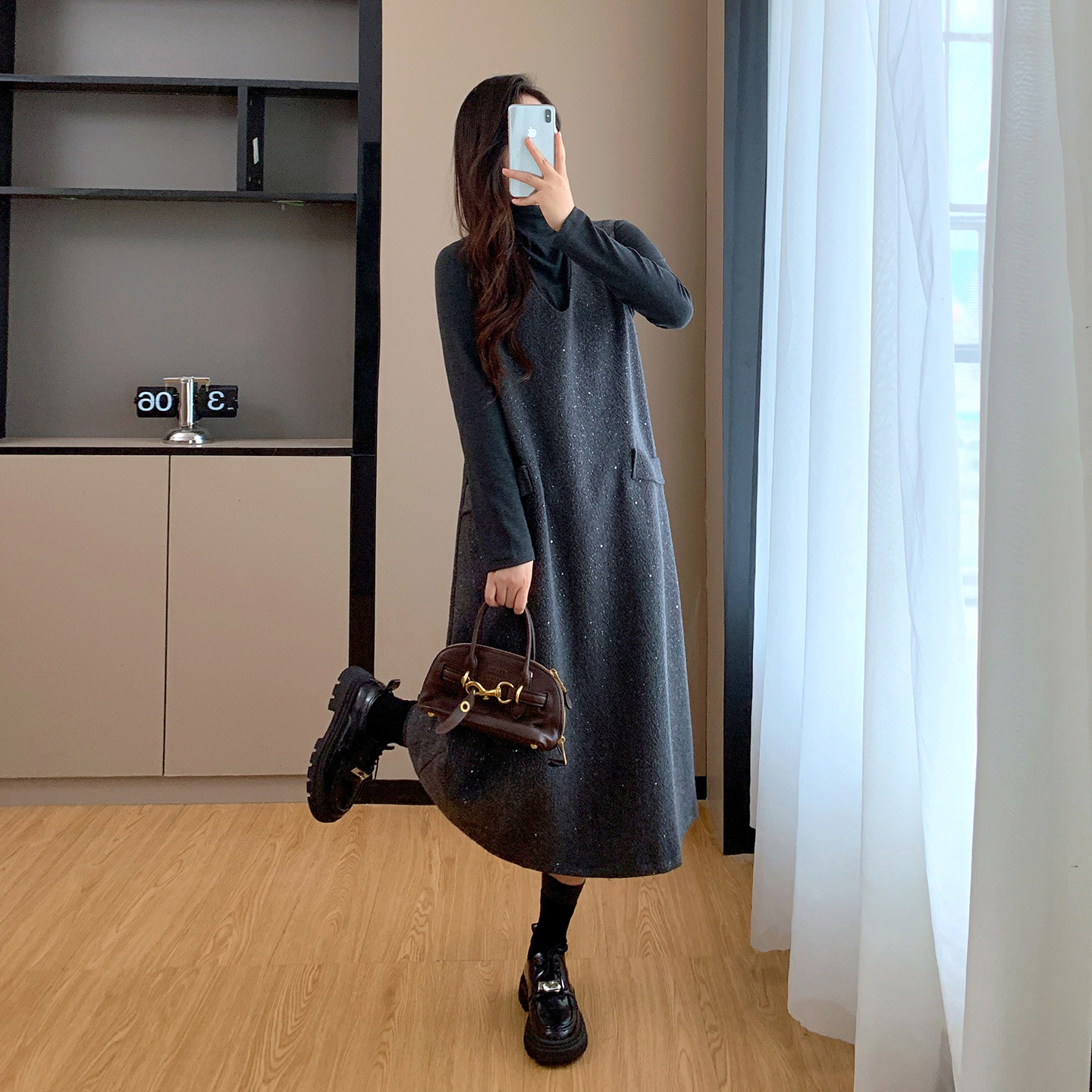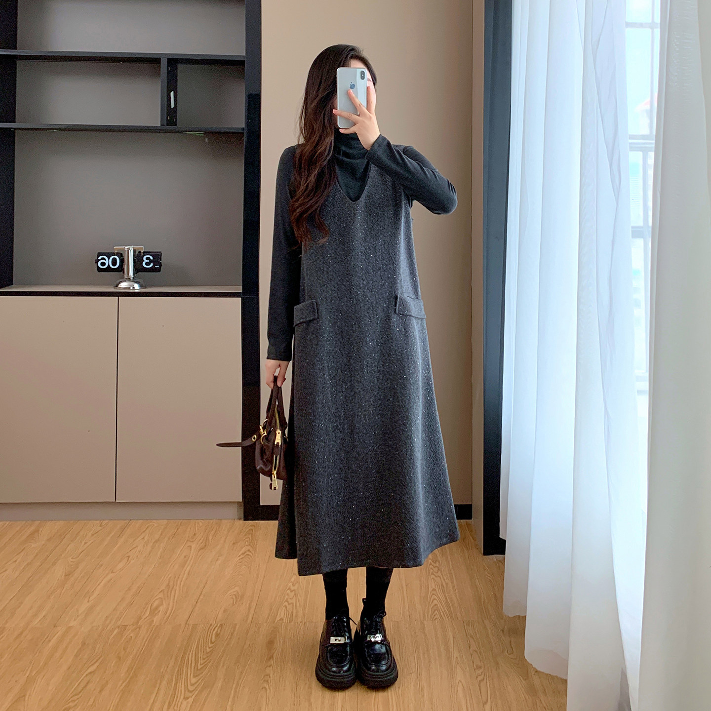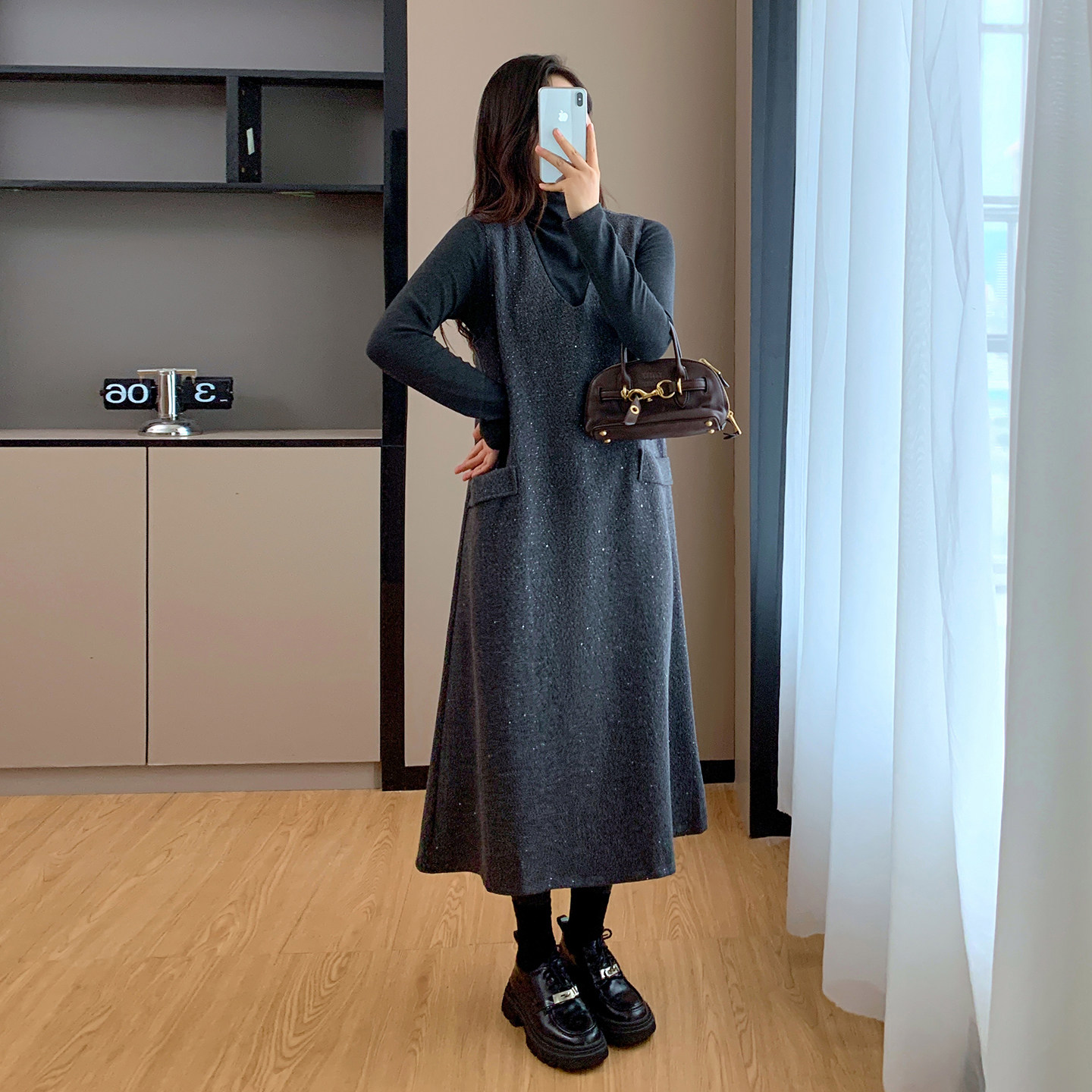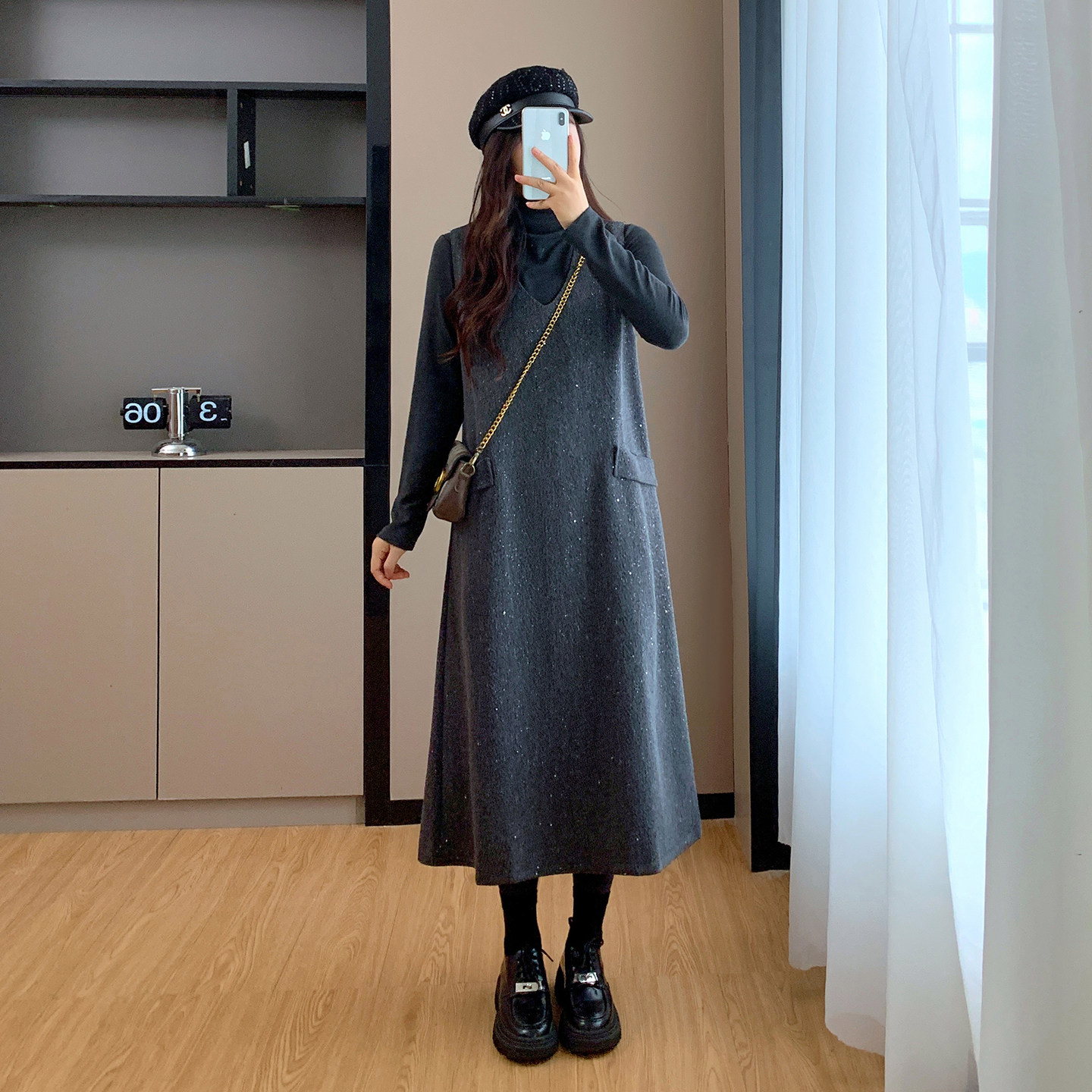 秋冬季高级感长款背心裙毛呢连衣裙两件套2025新款大码胖mm套装裙