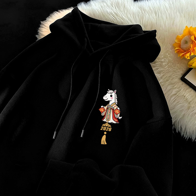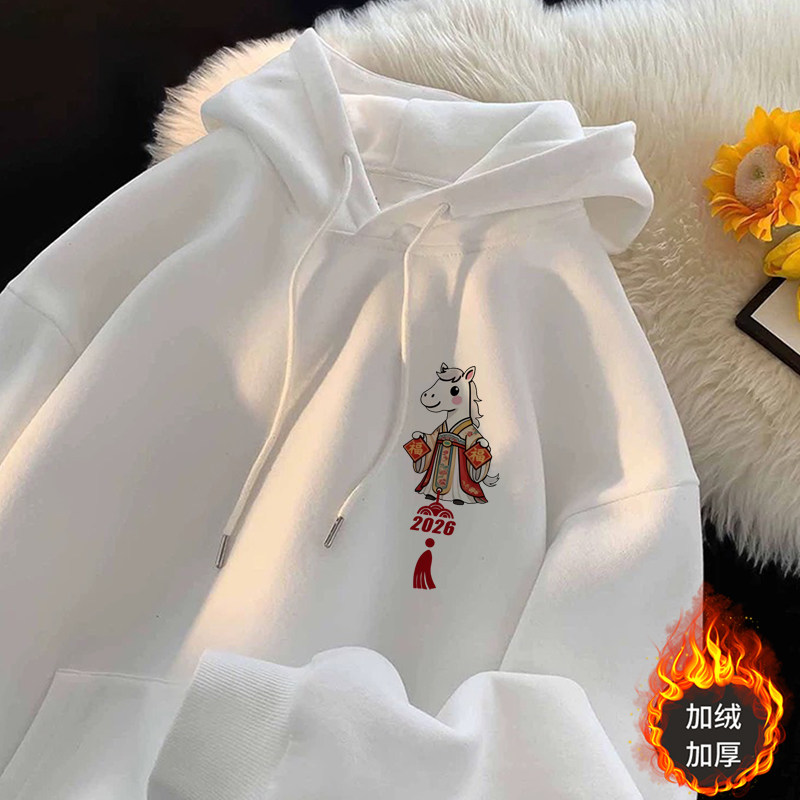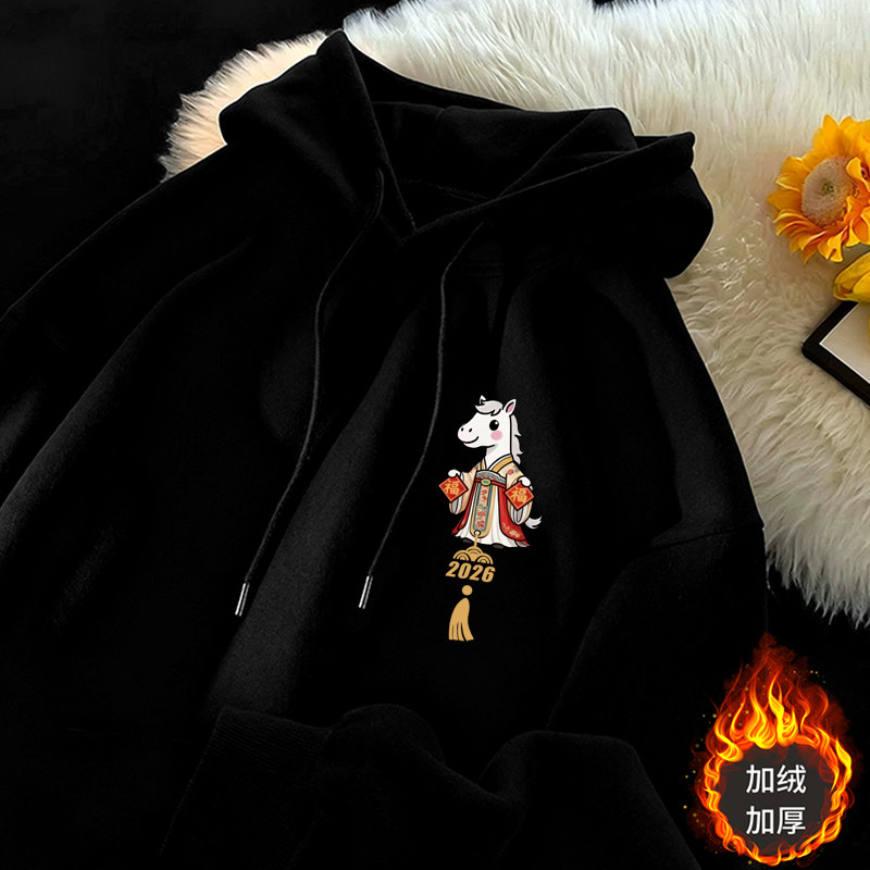大码300斤红色卫衣男女款青少年连帽上衣2026马年本命年衣服外套