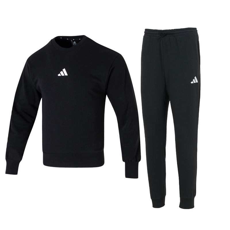 Adidas阿迪达斯运动跑步套装男款2025秋冬新款黑色卫衣长裤两件套