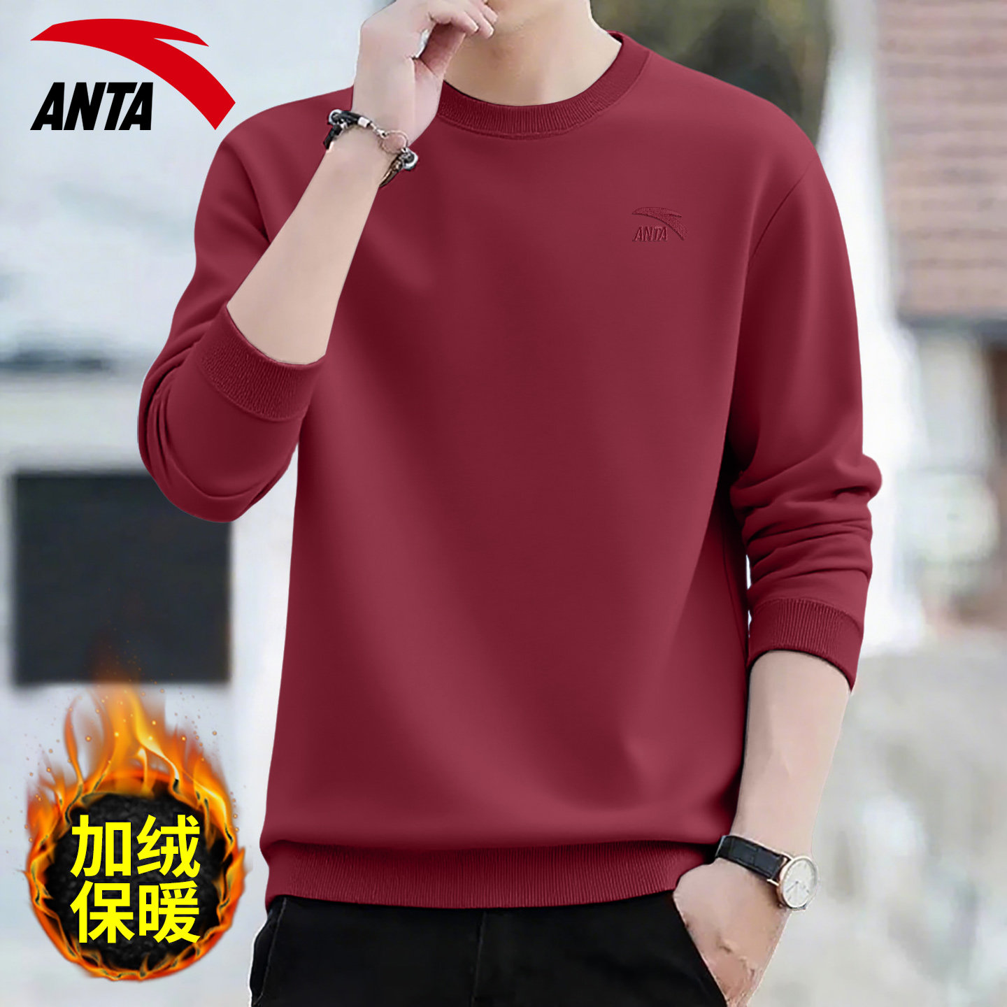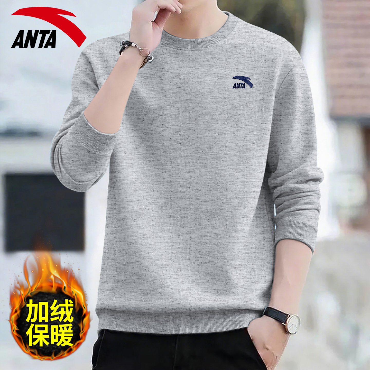 安踏加绒卫衣男款2025冬季新款官方旗舰店正品男装加厚圆领长袖男