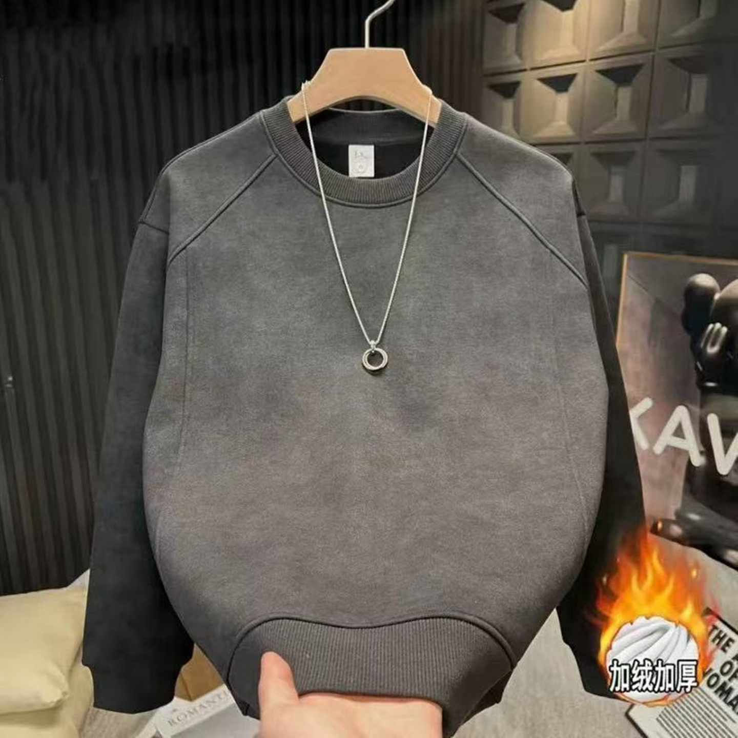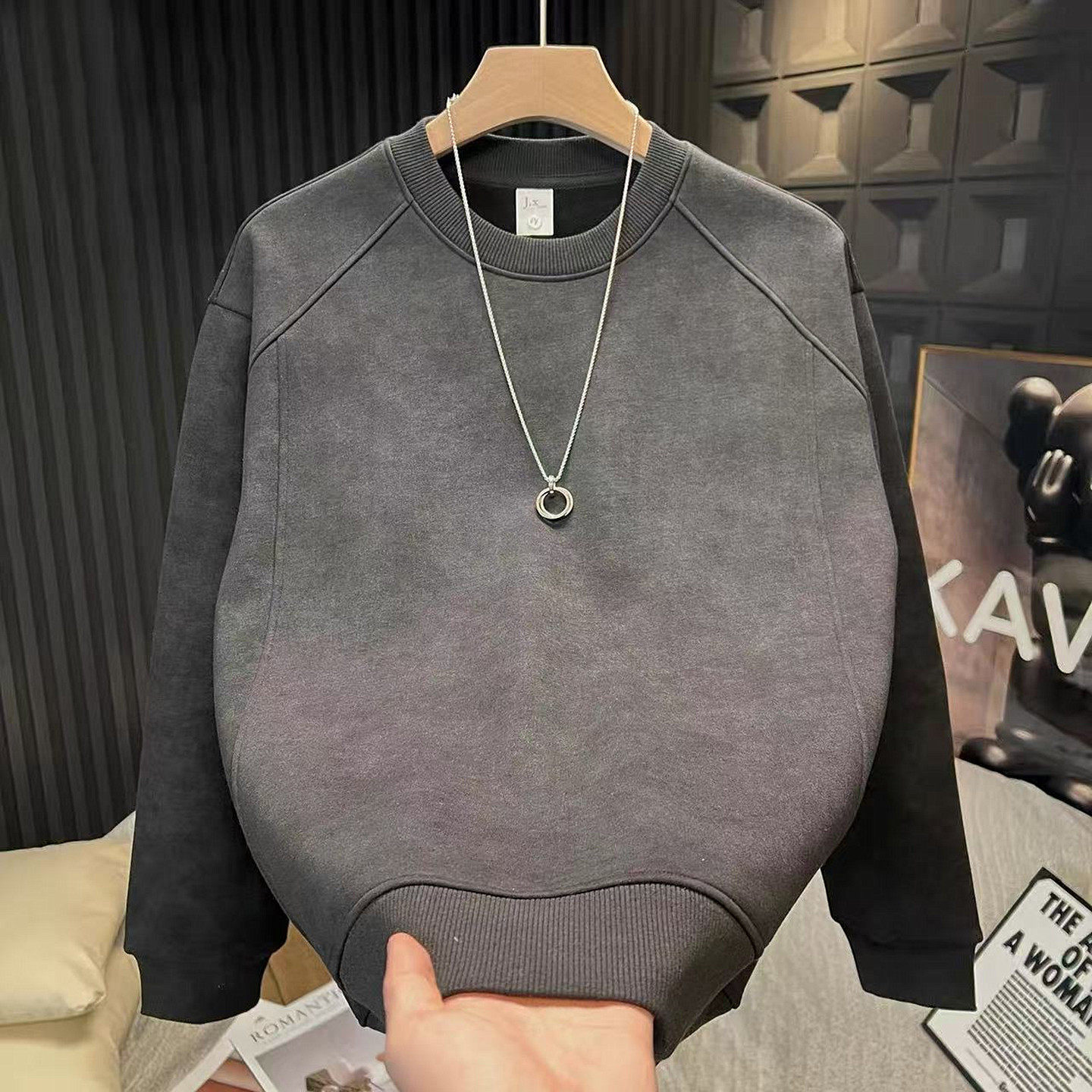 潮牌美式扎染圆领卫衣男款秋冬季重磅无帽加绒外套男装上衣打底衫