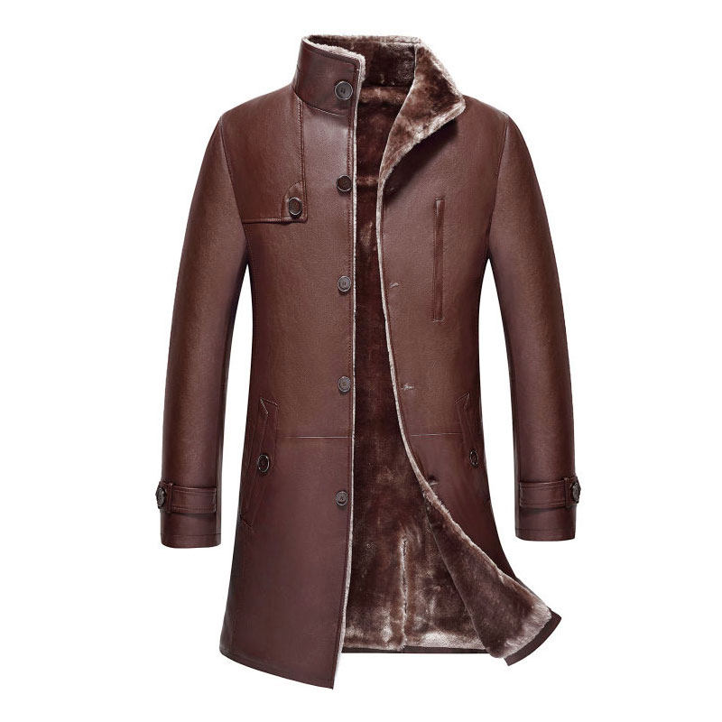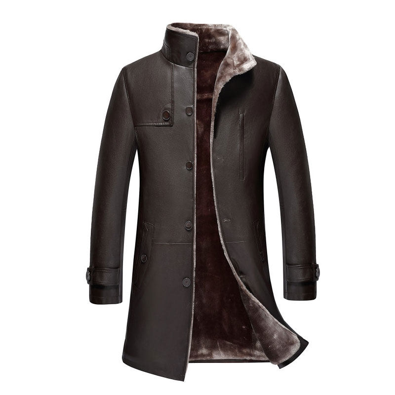 海宁男装真皮皮衣中长款立领绵羊皮皮毛一体男士加厚皮草大衣外套