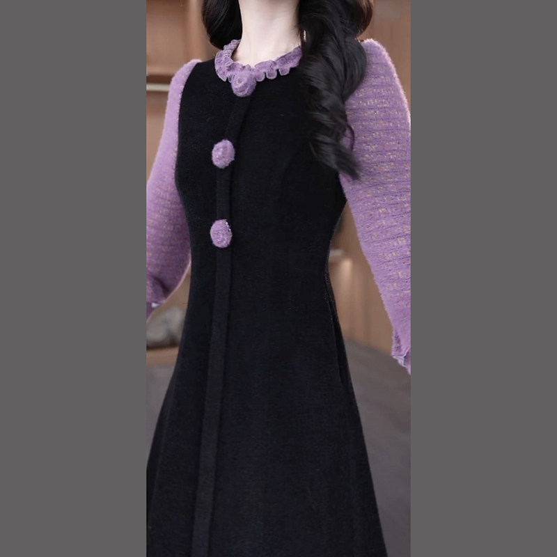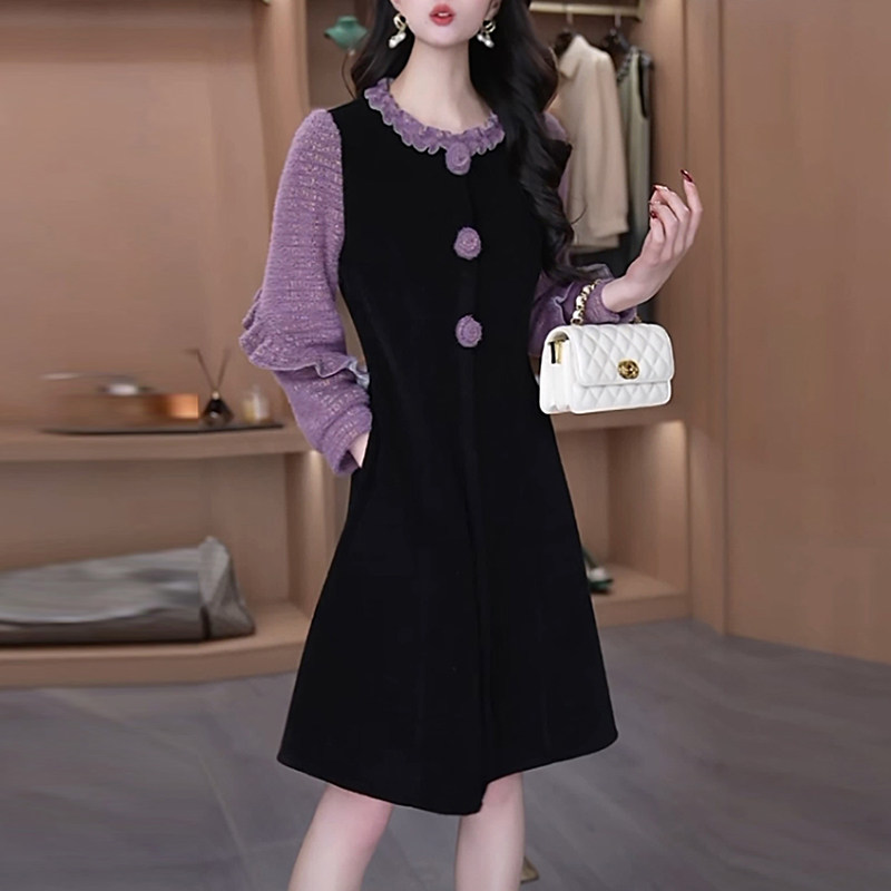 雪花绒气质轻奢女装2025秋冬季新款高级感小个子加厚内搭连衣裙子