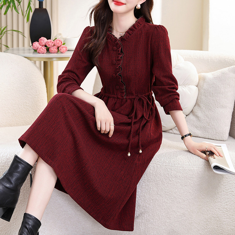 喜婆婆婚宴装连衣裙女2025新款小个子妈妈结婚礼服秋冬季加厚裙子