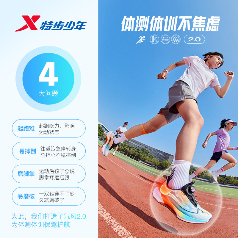氘风2.0|特步青少年跑步鞋体考体测竞速训练鞋儿童运动鞋男童鞋子