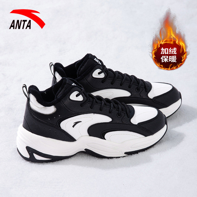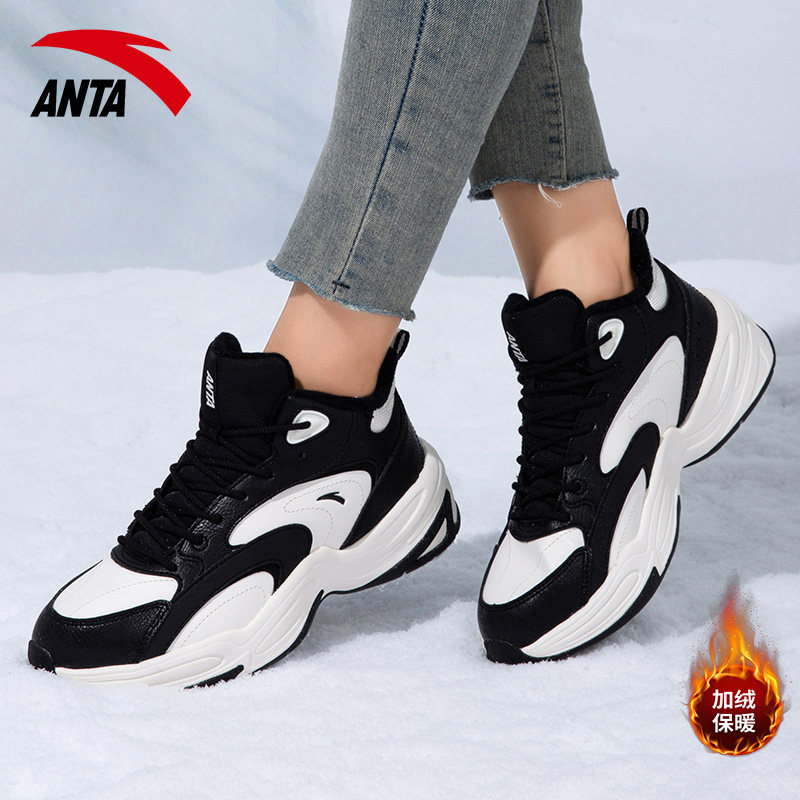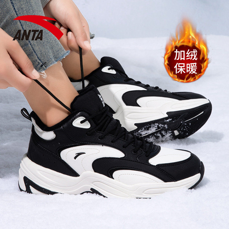 安踏女鞋2025冬季加绒保暖棉鞋防滑耐磨运动鞋高帮厚底女款老爹鞋