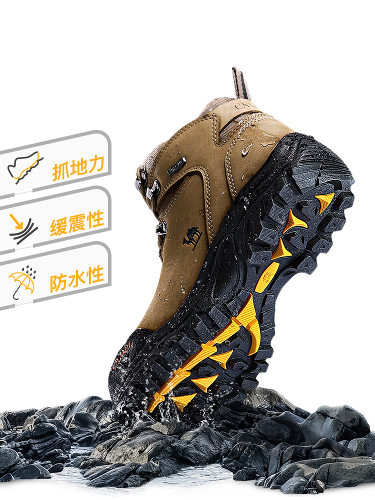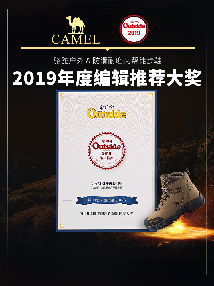 骆驼户外登山鞋男防滑耐磨牛皮高帮靴女士运动越野徒步鞋男