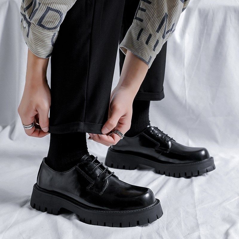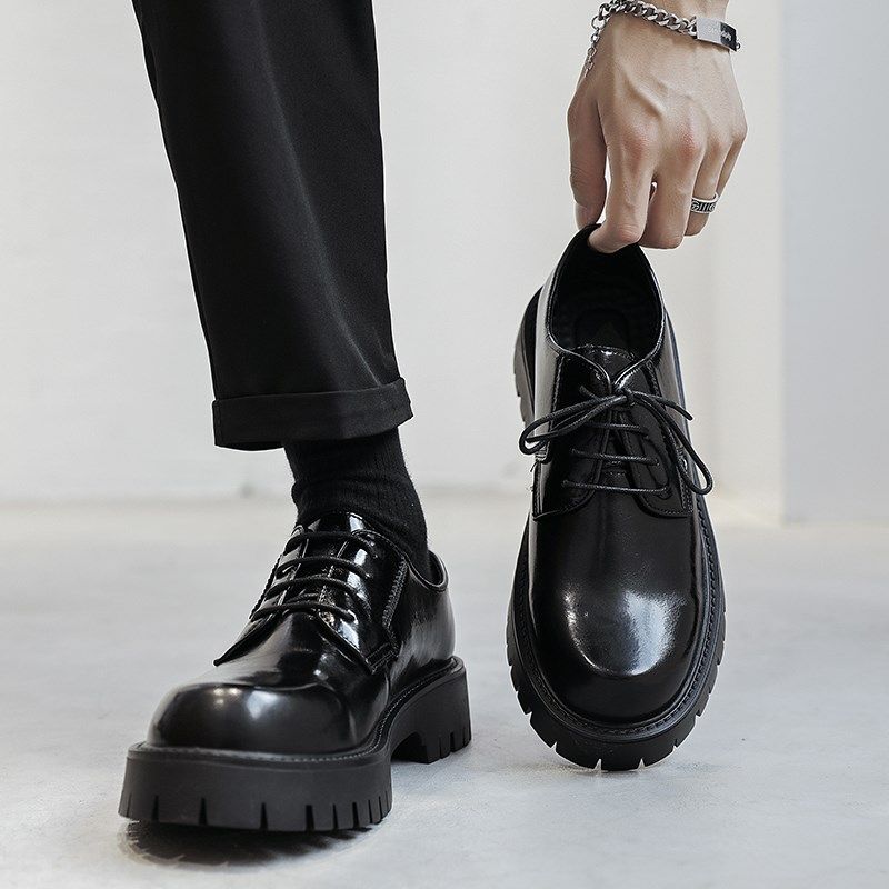 皮鞋男款正装商务黑色高级感英伦风男生大头厚底德比鞋增高休闲鞋